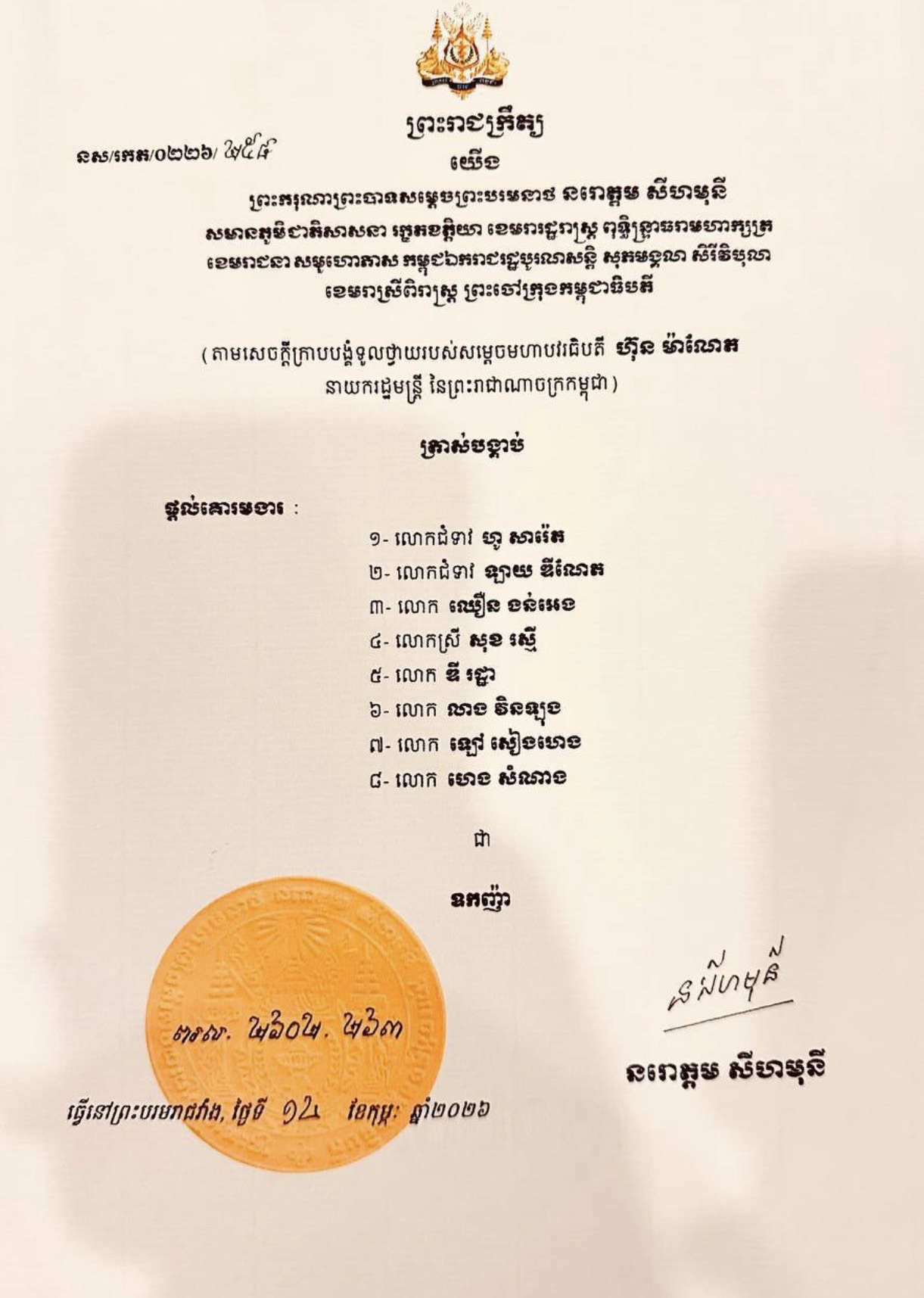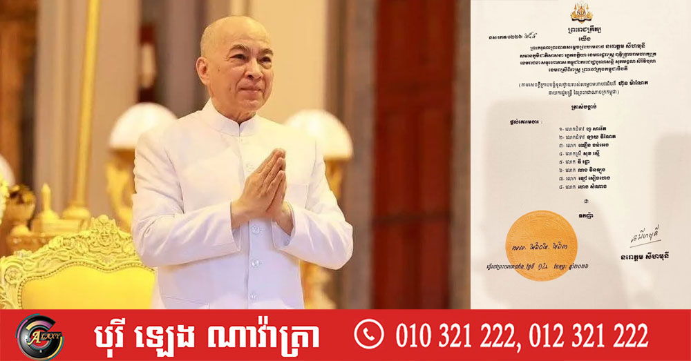 ព្រះមហាក្សត្រ ចេញព្រះរាជក្រឹត្យត្រាស់បង្គាប់ផ្តល់គោរមងារជា «ឧកញ៉ា» ដល់អ្នកជំនួញ៨នាក់