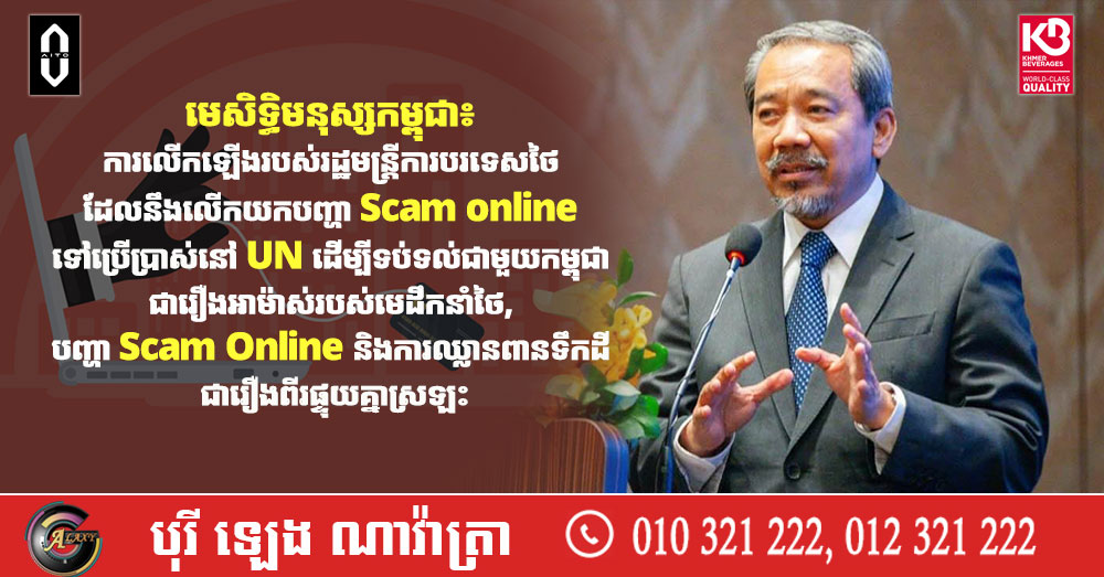មេសិទ្ធិមនុស្សកម្ពុជា៖ ការលើកឡើងរបស់រដ្ឋមន្ត្រីការបរទេសថៃ ដែលនឹងលើកយកបញ្ហា Scam online ទៅប្រើប្រាស់នៅ UN ដើម្បីទប់ទល់ជាមួយកម្ពុជា ជារឿងអាម៉ាស់របស់មេដឹកនាំថៃ, បញ្ហា Scam Online និងការឈ្លានពានទឹកដី ជារឿងពីរផ្ទុយគ្នាស្រឡះ (Video inside)