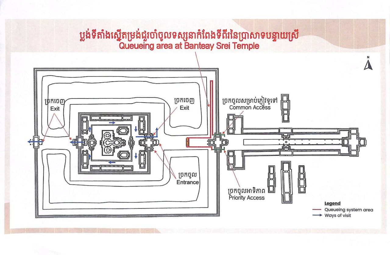 អាជ្ញាធរជាតិអប្សរា នឹងដាក់អនុវត្តសាកល្បងការតម្រង់ជួររង់ចាំ (A Queueing System) នៅច្រកចូលកំពែងទីពីរ នៃប្រាសាទបន្ទាយស្រី រយៈពេល៧ថ្ងៃ