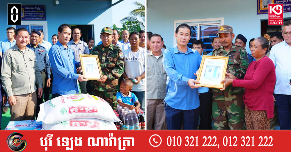 ផ្ទះថ្មីដ៏រឹងមាំ ចំនួន២ខ្នង ជាអំណោយដ៏ថ្លៃថ្លារបស់ សម្តេចបវរធិបតី ហ៊ុន ម៉ាណែត និងលោកជំទាវបណ្ឌិត ពេជ ចន្ទមុន្នី តាមរយៈសប្បុរសជន ត្រូវបានប្រគល់ជូនគ្រួសារវីរយុទ្ធជនជួបការលំបាក ក្នុងស្រុកបាកាន