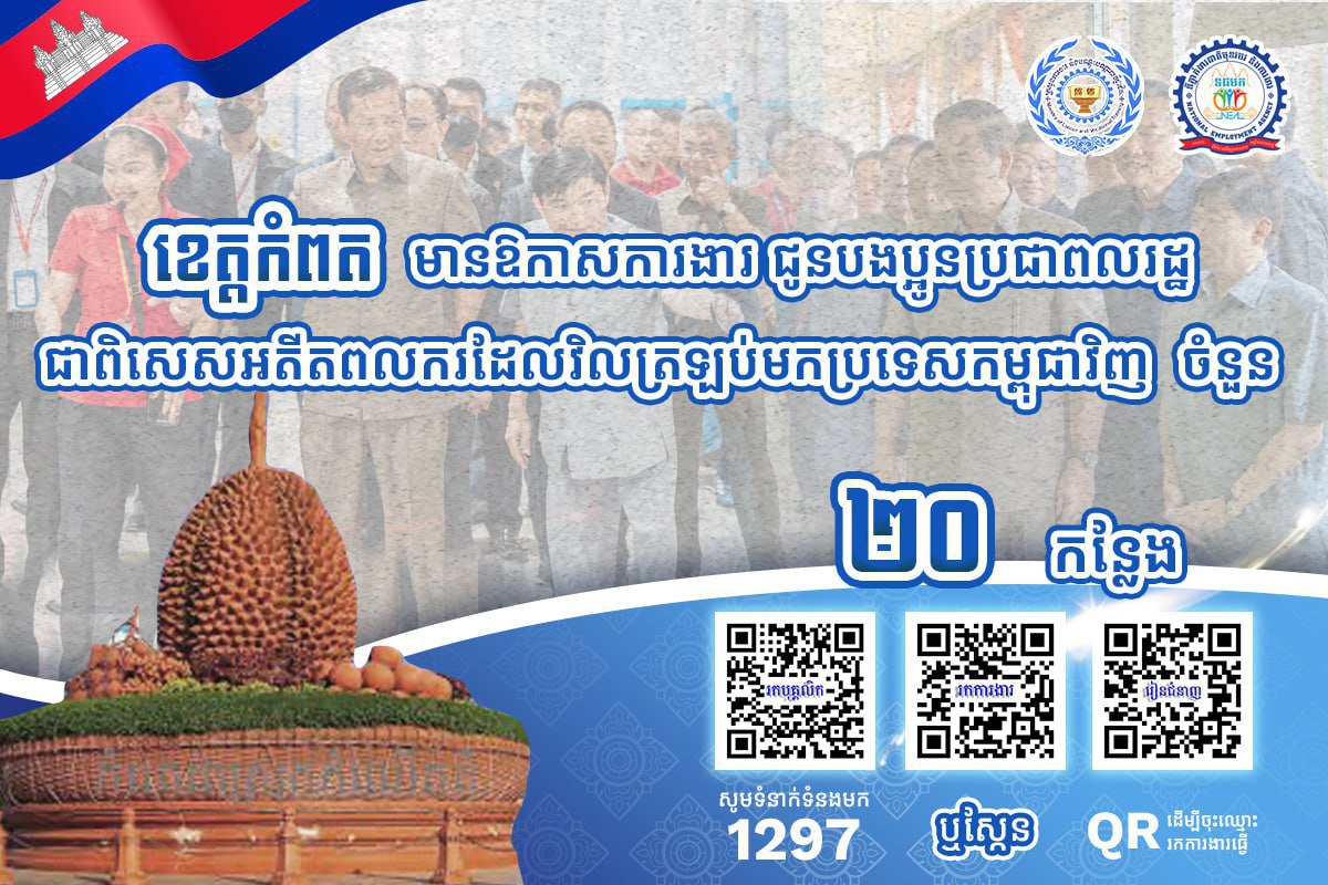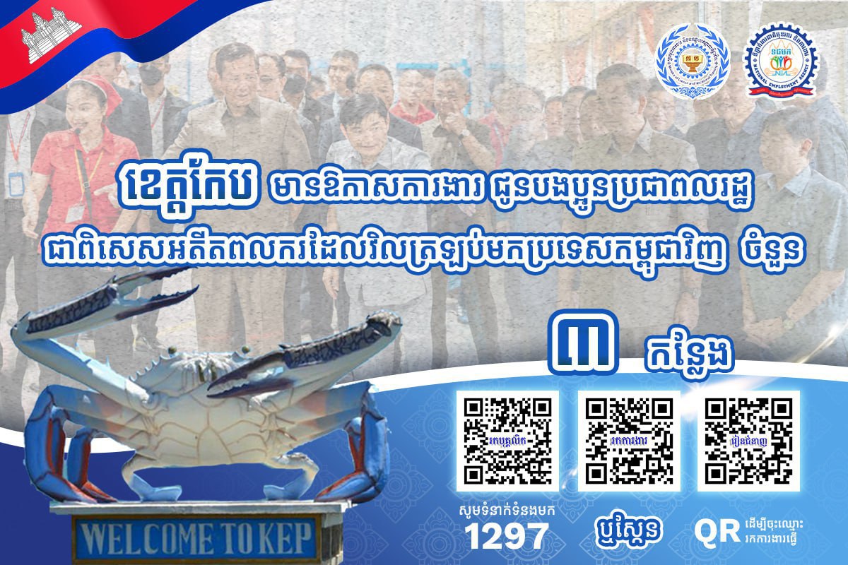 តាមរយៈការផ្សព្វផ្សាយ ក្រសួងការងារ បានឱ្យដឹងថា គិតត្រឹមថ្ងៃទី១៣ ខែកុម្ភៈ ឆ្នាំ២០២៦នេះ ខេត្តជាប់មាត់សមុទ្ររួមមាន៖ ខេត្តកោះកុង ព្រះសីហនុ កំពត និងខេត្តកែប មានឱកាសការងារសរុបចំនួន ៣,១៤៨កន្លែង កំពុងរង់ចាំបងប្អូនអតីតពលករត្រឡប់មកពីប្រទេសថៃ និងអ្នកកំពុងស្វែងរកការងារធ្វើ។ ឱកាសការងារទាំងនោះ ស្ថិតក្នុងវិស័យឧស្សាហកម្ម សេវាកម្ម និងវិស័យកសិកម្ម។