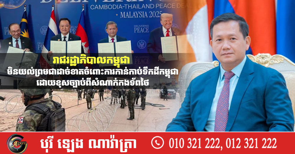 រាជរដ្ឋាភិបាលកម្ពុជា មិនយល់ព្រមជាដាច់ខាតចំពោះការកាន់កាប់ទឹកដីកម្ពុជាដោយខុសច្បាប់ពីសំណាក់កងទ័ពថៃ