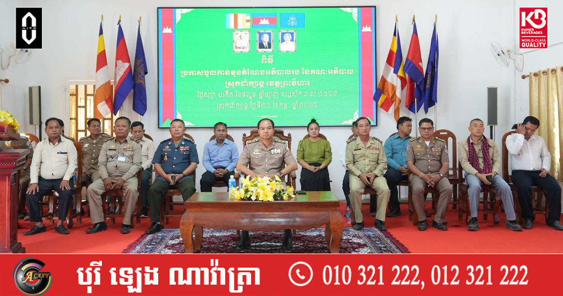 (ព្រះវិហារ)៖ លោក ថោង គឹមថេង អតីតនាយករដ្ឋបាលសាលាស្រុកជាំក្សាន្ត ត្រូវបានថ្នាក់ដឹកនាំផ្តល់សេចក្តីទុកចិត្ត តែងតាំងជាអភិបាលរងស្រុកជាំក្សាន្ត និងបានប្រកាសចូលកាន់តំណែងជាផ្លូវការនៅរសៀលថ្ងៃទី២០ ខែកុម្ភៈ ឆ្នាំ២០២៦នេះ ក្រោមវត្តមានលោក គីម រិទ្ធី អភិបាលខេត្តព្រះវិហារ។