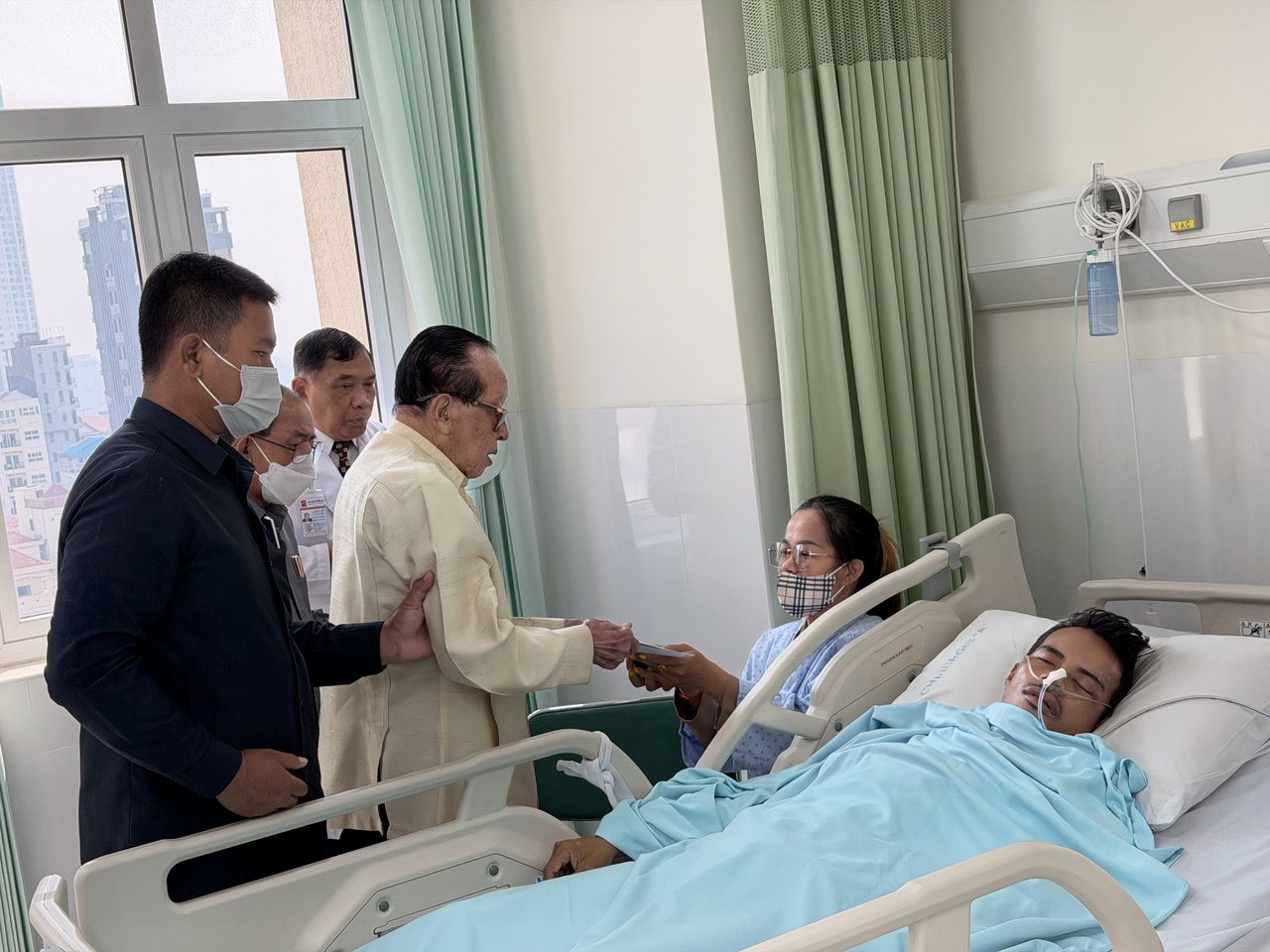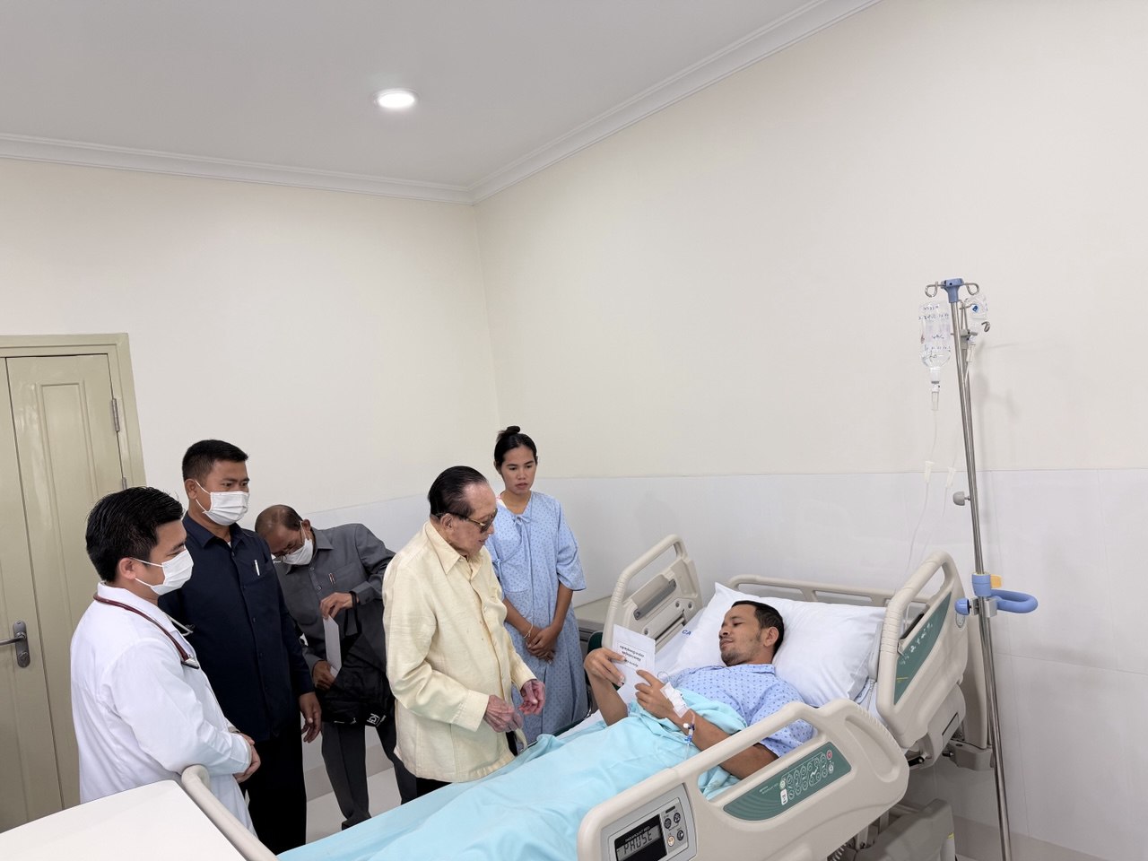 (ភ្នំពេញ)៖ សម្តេច ឥស្សរវិទេសបញ្ញា ហោ ណាំហុង ឧត្តមប្រឹក្សាផ្ទាល់ព្រះមហាក្សត្រ ក្នុងមនោសញ្ចេតនាយ៉ាងជ្រាលជ្រៅ និងសមានចិត្តអាណិតអាសូរយ៉ាងពន់ពេកដល់វីរយុទ្ធជនកម្ពុជា ដែលរងរបួសដោយសារការខិតខំតស៊ូការពារបូរណភាពដែនដីយ៉ាងអង់អាចក្លាហាន ពីការឈ្លានពានដោយចោរសៀមសារជាថ្មី នៅថ្ងៃសៅរ៍ ទី២១ ខែកុម្ភៈ ឆ្នាំ២០២៦ និងឧបត្ថម្ភថវិកាមួយចំនួនដល់វីរកងទ័ពកម្ពុជាចំនួន ៥នាក់ ដែលកំពុងសម្រាកព្យាបាលនៅមន្ទីរពេទ្យកាល់ម៉ែត។