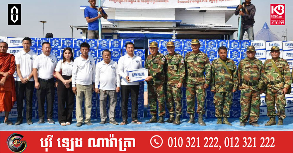ក្រុមសេនាតេជោសន្តិភាព នាំយកទឹកបរិសុទ្ធកម្ពុជាចំនួន ១ ០០០កេស ជូនវីរកងទ័ព និងវីរនគបាលជាតិ ឈរជើងនៅជួរមុខប្រចាំនៅទិសខេត្តបន្ទាយមានជ័យ