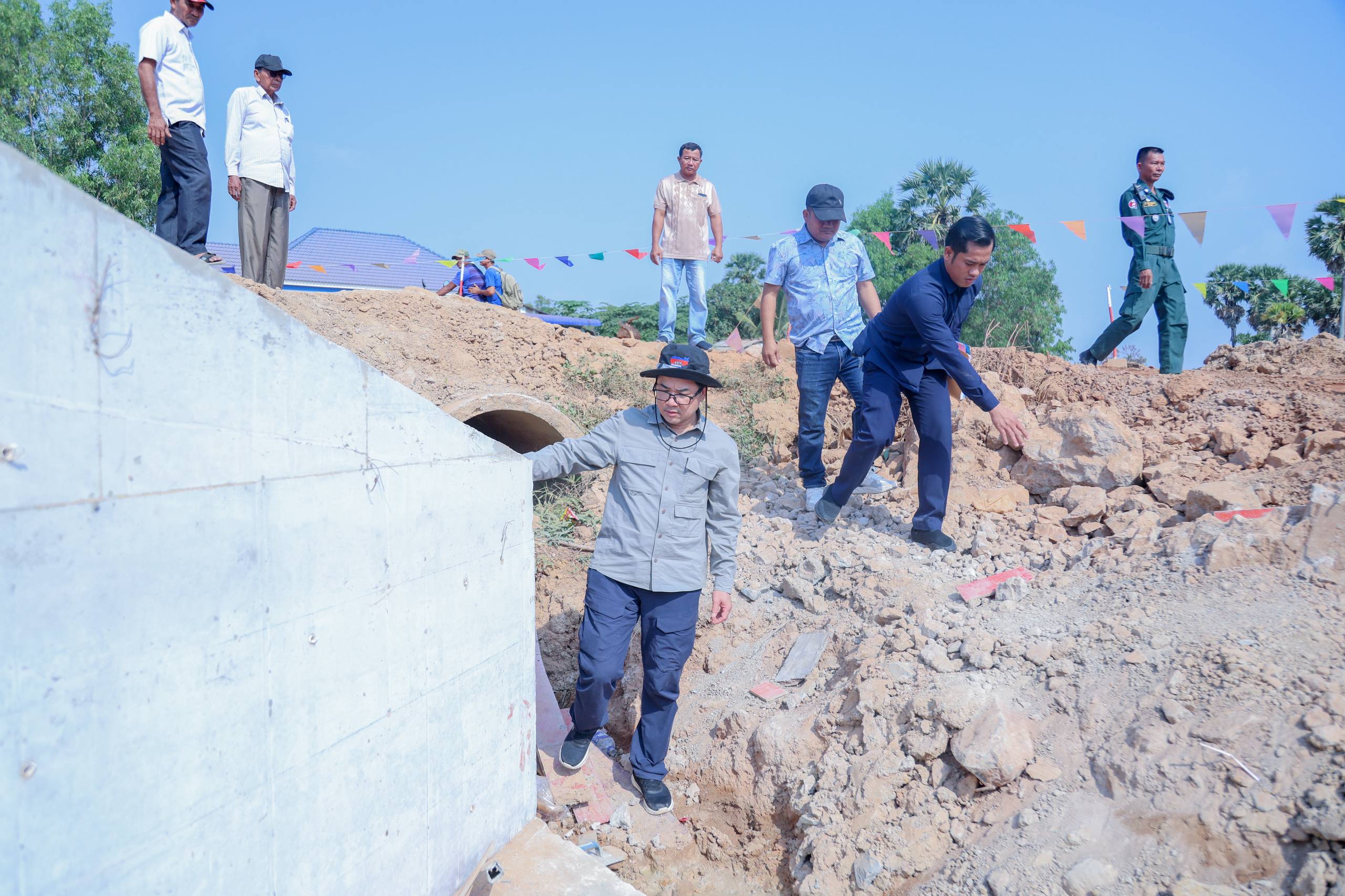 (កំពត)៖ លោកបណ្ឌិត ជ្រុន ថេរ៉ាវ៉ាត រដ្ឋលេខាធិការក្រសួងអភិវឌ្ឍន៍ជនបទ បន្ទាប់ពីទទួលបានការណែនាំពីលោករដ្ឋមន្រ្តី នៅព្រឹកថ្ងៃទី២១ ខែកុម្ភៈ ឆ្នាំ២០២៦នេះ បានដឹកនាំ គណៈប្រតិភូ អញ្ជើញចុះពិនិត្យការងារស្ថាបនាផ្លូវក្រាលកៅស៊ូពីរជាន់ (DBST) ចំនួន១ខ្សែ ប្រវែង ២,០០០ម៉ែត្រ ទទឹង៧ម៉ែត្រ ចិញ្ចើមផ្លូវសងខាង ក្រាលដីល្បាយក្រួស ទទឹងម្ខាងៗ ១ម៉ែត្រ កម្រាស់០.២ម៉ែត្រ សាងសង់លូគ្រប់ប្រភេទចំនួន៧កន្លែង ស្ថិតនៅភូមិត្រាំសសរ និងភូមិបរិវាស ឃុំសំរោងលើ ស្រុកបន្ទាយមាស ខេត្តកំពត (គម្រោងលេខ DRR-NC-2024-No.053)។