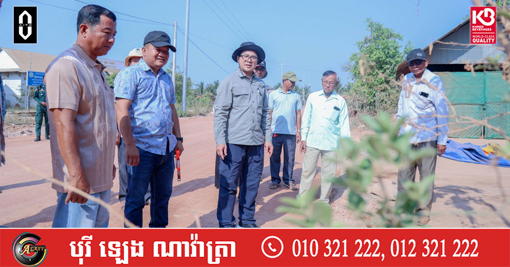មន្ដ្រីជាន់ខ្ពស់ក្រសួងអភិវឌ្ឍន៍ជនបទ ចុះពិនិត្យផ្លូវក្រាលកៅស៊ូពីរជាន់ (DBST) ចំនួន១ខ្សែ ប្រវែង២,០០០ម៉ែត្រ នៅឃុំសំរោងលើ ស្រុកបន្ទាយមាស