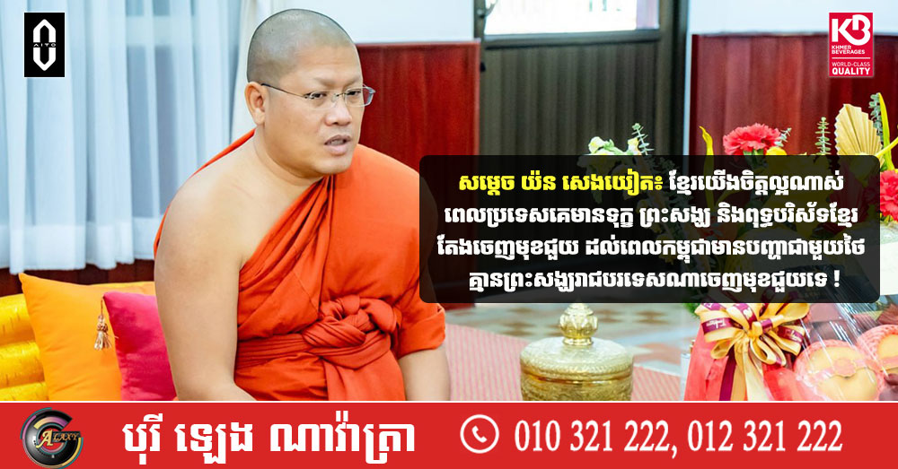 សម្តេច យ៉ន សេងយៀត៖ ខ្មែរយើងចិត្តល្អណាស់ ពេលប្រទេសគេមានទុក្ខ ព្រះសង្ឃ និងពុទ្ធបរិស័ទខ្មែរ តែងចេញមុខជួយ ដល់ពេលកម្ពុជាមានបញ្ហាជាមួយថៃ គ្មានព្រះសង្ឃរាជបរទេសណាចេញមុខជួយទេ ! (Video inside)