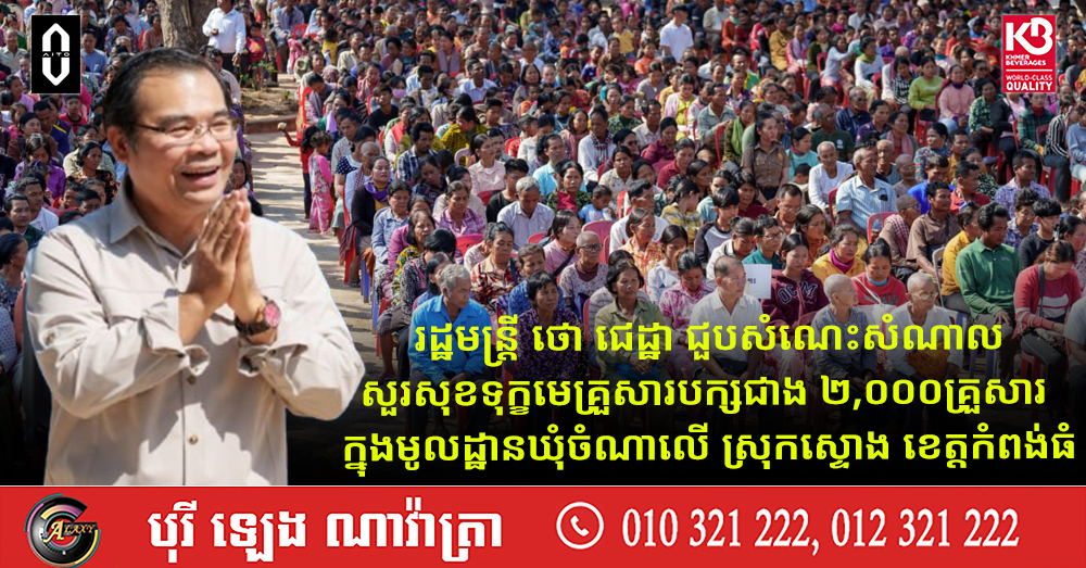 រដ្ឋមន្ត្រី ថោ ជេដ្ឋា ជួបសំណេះសំណាលសួរសុខទុក្ខមេគ្រួសារបក្សជាង ២,០០០គ្រួសារ ក្នុងមូលដ្ឋានឃុំចំណាលើ ស្រុកស្ទោង ខេត្តកំពង់ធំ