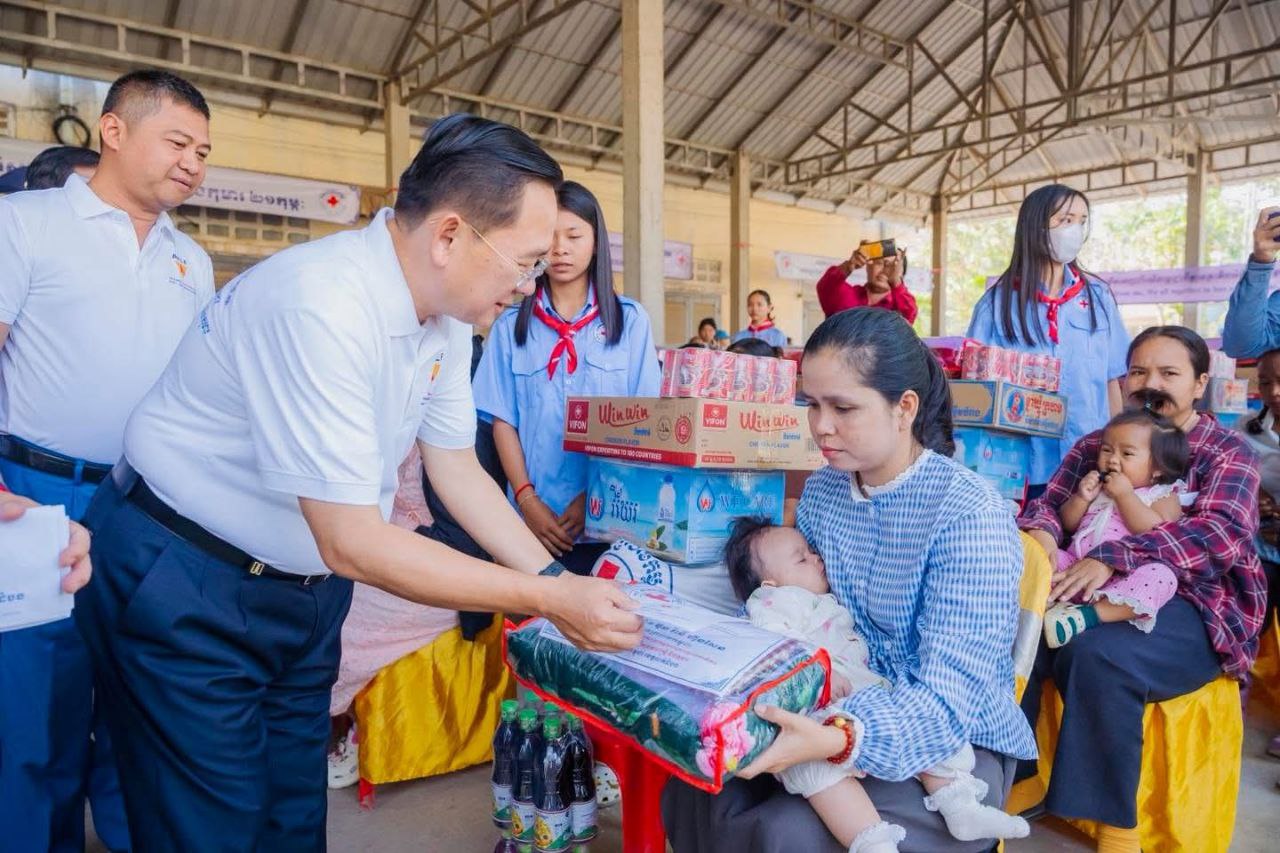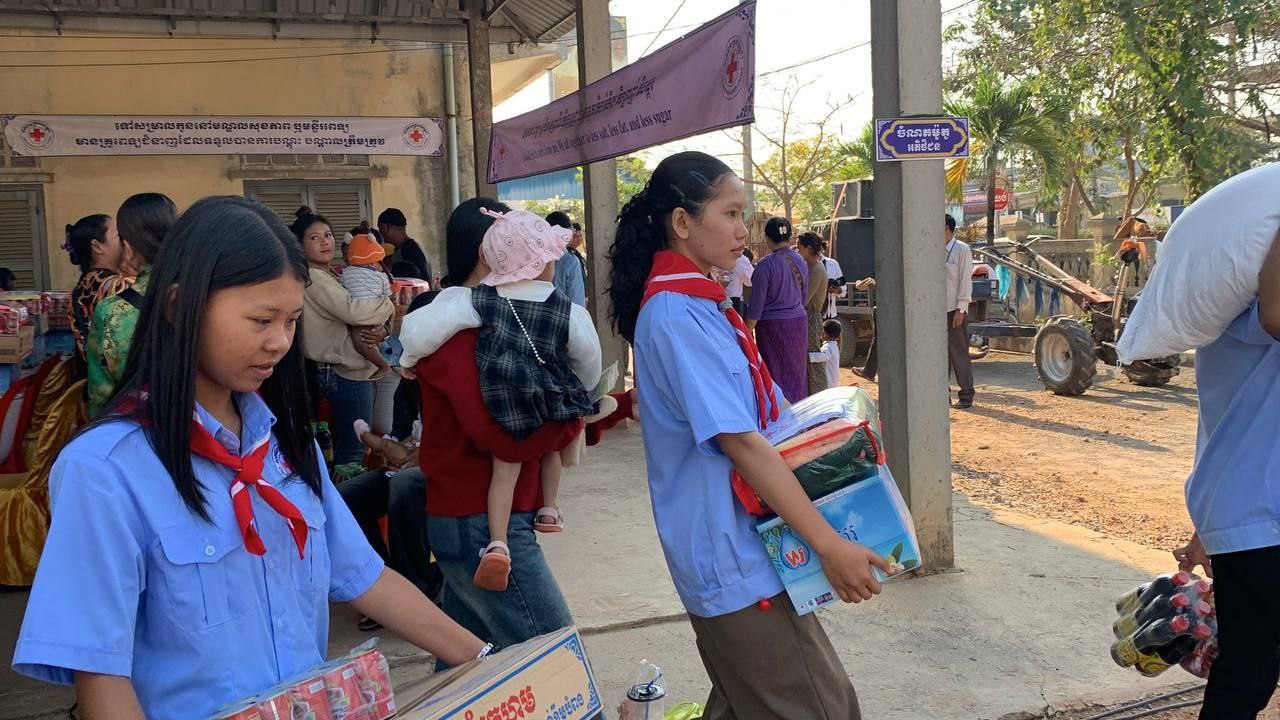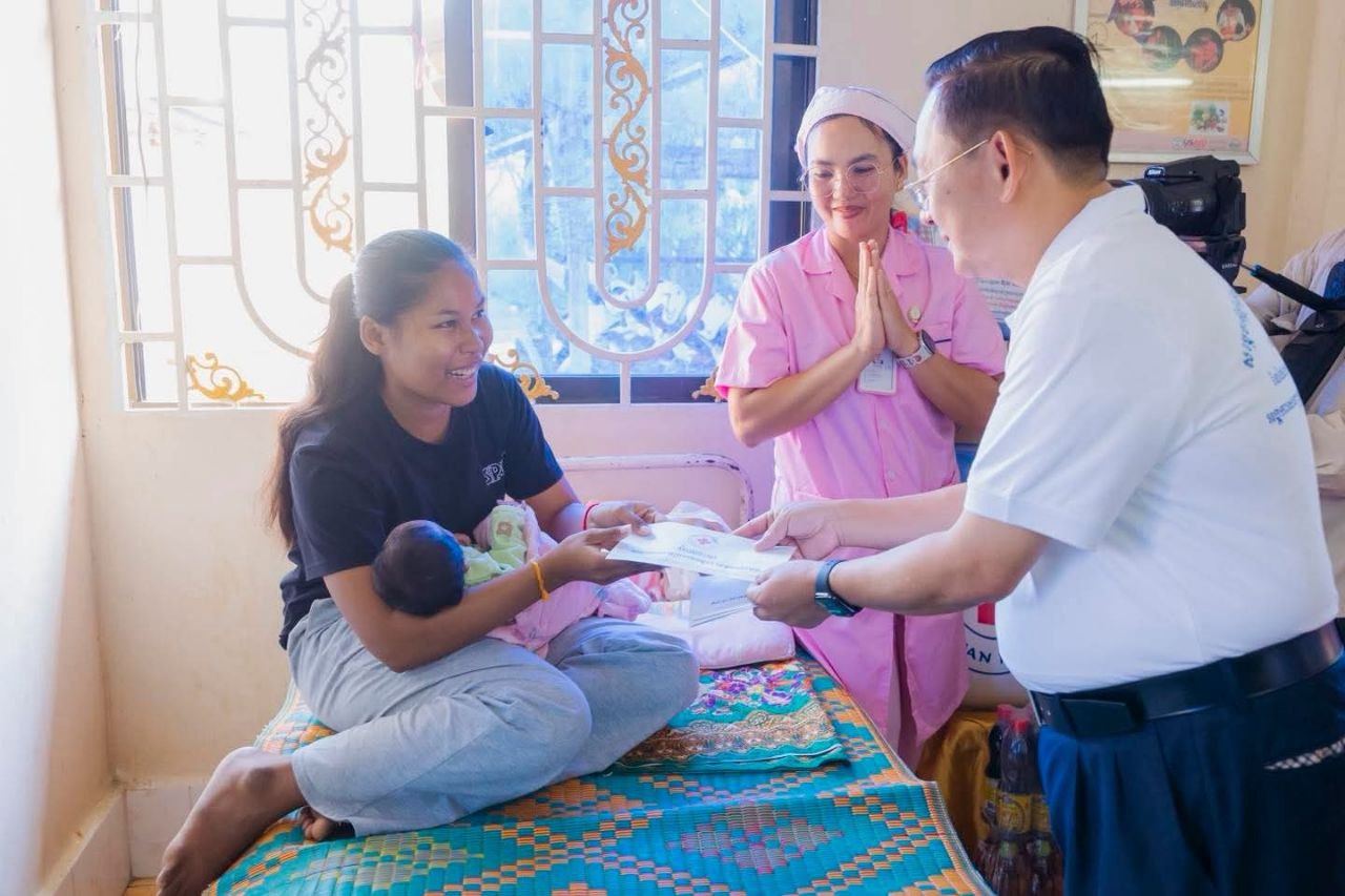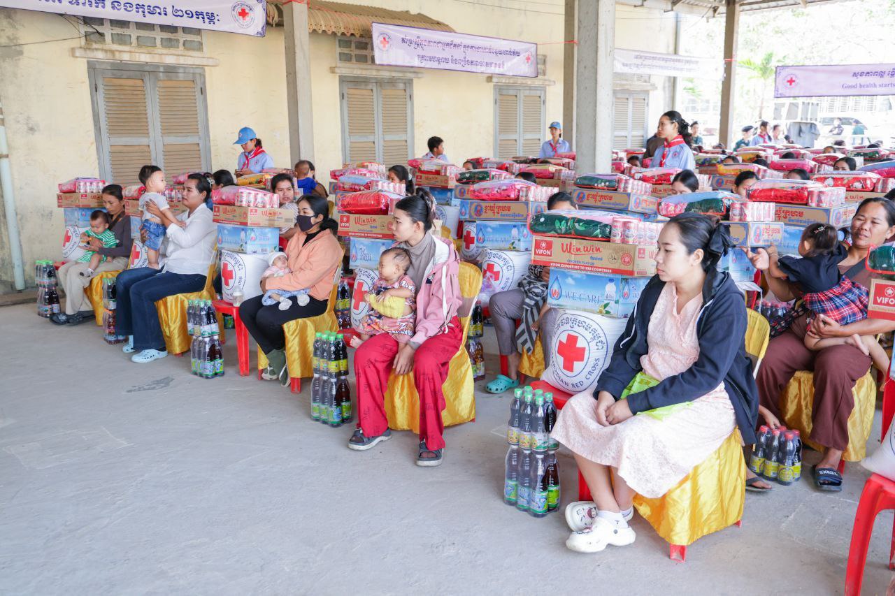 (បាត់ដំបង)៖ កាកបាទក្រហមកម្ពុជា ដែលមានសម្តេចព្រះមហាក្សត្រី ព្រះវររាជមាតាជាតិខ្មែរ ជាព្រះប្រធានកិត្តិយស និងសម្តេចកិត្តិព្រឹទ្ធបណ្ឌិត ប៊ុន រ៉ានី ហ៊ុនសែន ជាប្រធាន និងជាឥស្សរជនឆ្នើមថ្នាក់ជាតិ នៃផែនការ សកម្មភាពរួម អគ្គលេខាធិការអង្គការសហប្រជាជាតិ ដើម្បីសុខភាពស្ត្រី និងកុមារ នៅព្រឹកថ្ងៃទី២១ ខែកុម្ភៈ ឆ្នាំ២០២៦ សាខាកាកបាទក្រហមកម្ពុជាខេត្តបាត់ដំបង បានរៀបចំពិធីសំណេះសំណាល សួរសុខទុក្ខស្ត្រីមានផ្ទៃពោះ និងស្ត្រីទើបសម្រាលកូនចំនួន៨០គ្រួសារ ក្នុងឱកាសទិវាជាតិសុខភាពមាតា ទារក និងកុមារ ២១ កុម្ភៈ ឆ្នាំ២០២៦ ក្រោមប្រធានបទ «រួមគ្នាលើកកម្ពស់គុណភាព សុវត្ថិភាព ប្រសិទ្ធភាពនៃការថែទាំផ្ទៃពោះមុនសម្រាល រួមទាំងក្នុង បរិបទមានគ្រោះអាសន្ន ឬគ្រោះមហន្តរាយ ដើម្បីធានាថាទាំងម្តាយ និងទារក មានសុខ ភាពល្អ»។