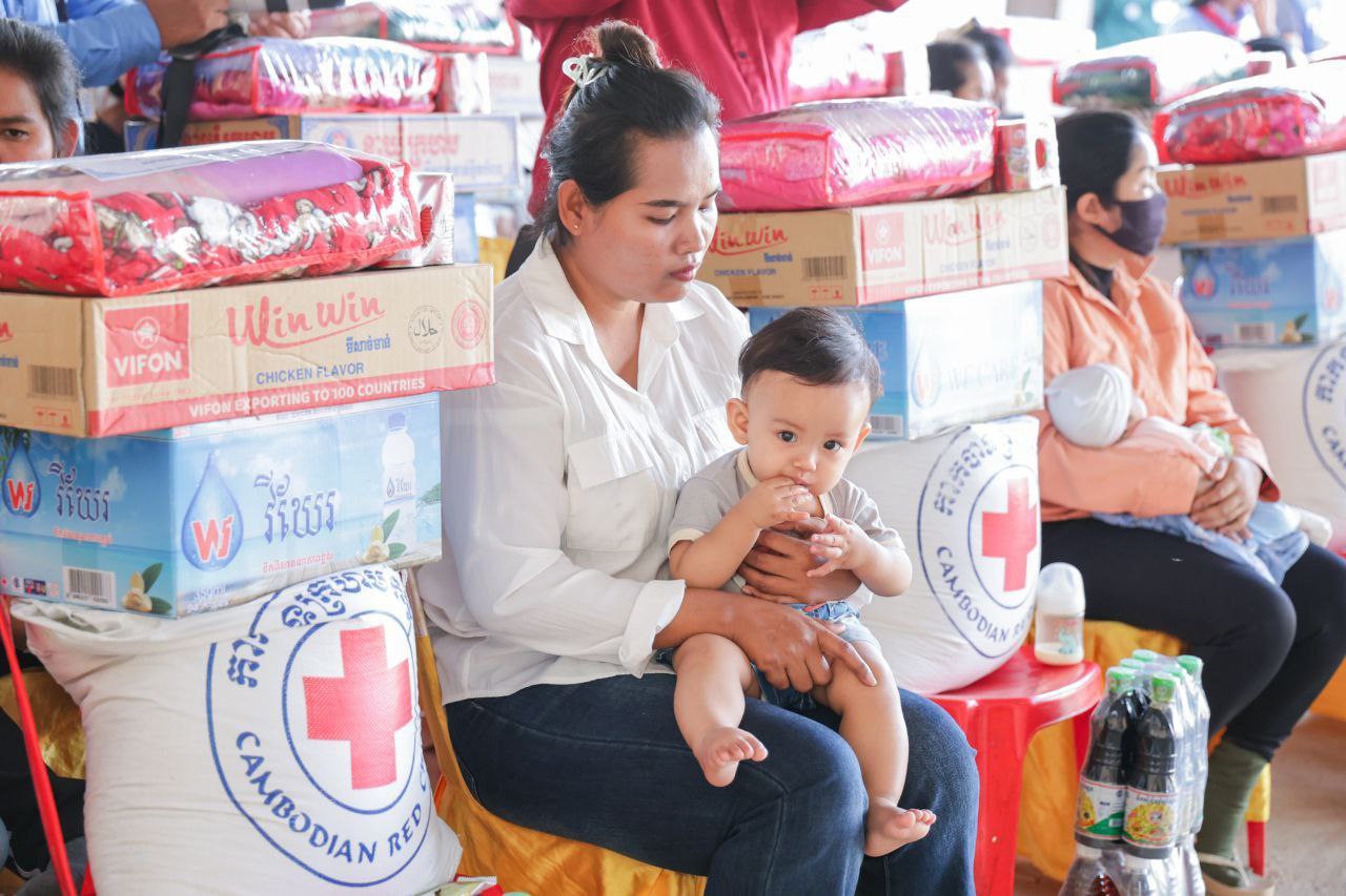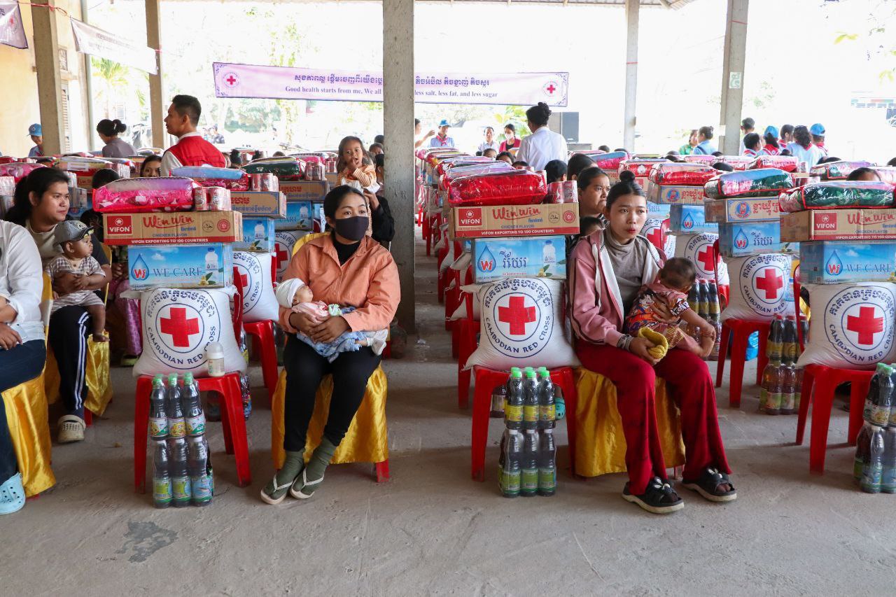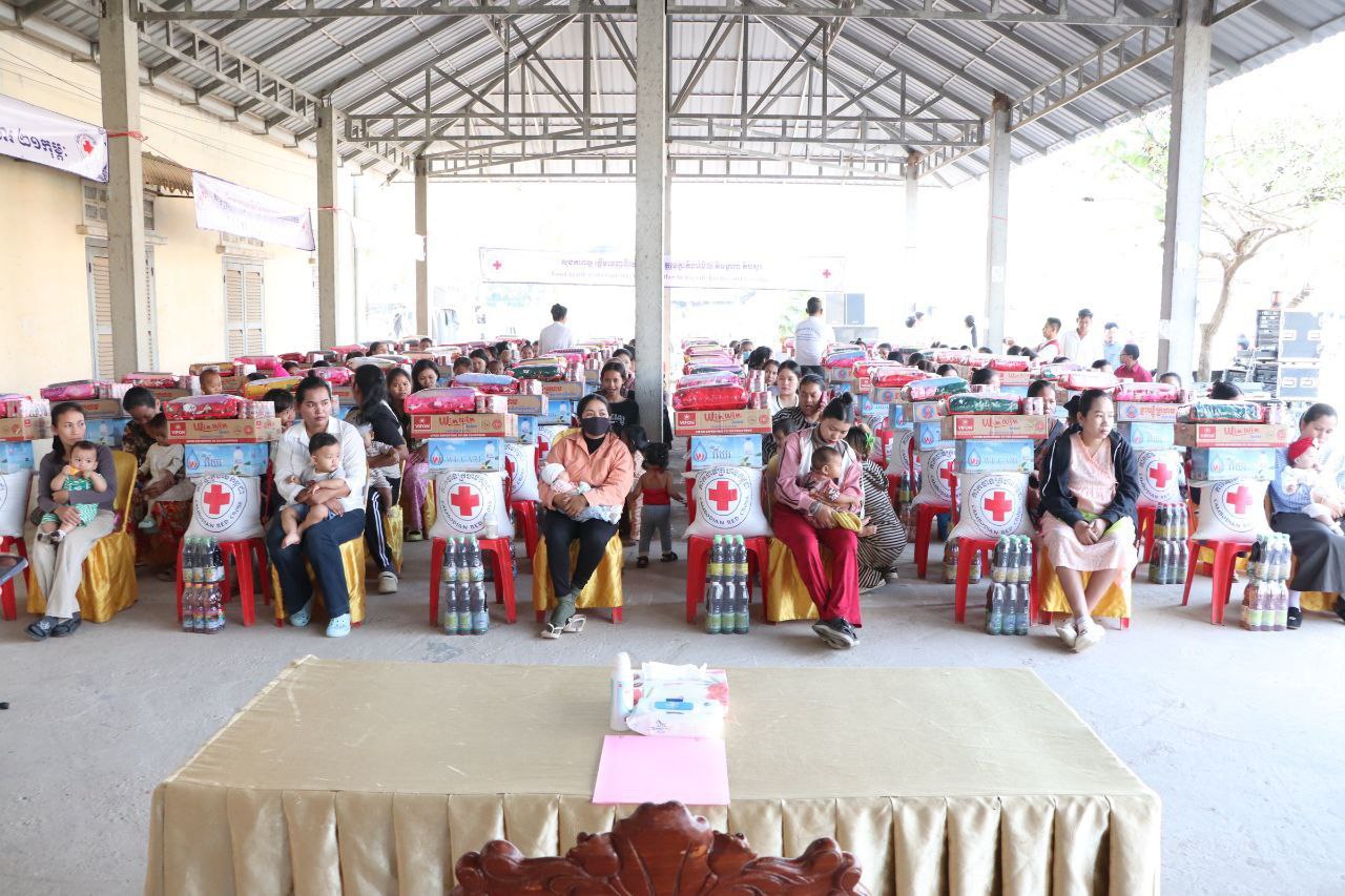 ស្ត្រីមានផ្ទៃពោះ និងស្រ្តីទើបសម្រាលកូនតូច៨០គ្រួសារ ទទួលអំណោយមនុស្សធម៌ពីក្រុមការងារឥស្សរជនឆ្នើមថ្នាក់ជាតិ នៃសាខាកាកបាទក្រហមកម្ពុជាខេត្តបាត់ដំបង
