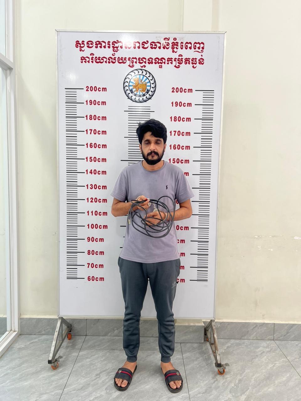 (ភ្នំពេញ)៖ ករណីឃាតកម្មជនជាតិប៉ាគីស្ថាន យកខ្សែកាប្លិ៍រឹតកសម្លាប់សង្សារខ្លួនឯងដែលជាជនជាតិប៉ាគីស្ថានដូចគ្នា កាលពីថ្ងៃទី៣១ ខែមករា ឆ្នាំ២០២៦កន្លងទៅ នៅភូមិព្រៃសាលា សង្កាត់កាកាបទី២ ខណ្ឌពោធិ៍សែនជ័យ រាជធានីភ្នំពេញ ត្រូវបានកម្លាំងស្នងការដ្ឋាននគរបាលរាជធានីភ្នំពេញ ស្រាវជ្រាវឈានដល់ការចាប់ខ្លួនបាននៅថ្ងៃទី១៩ ខែកុម្ភៈ ឆ្នាំ២០២៦ នៅចំណុចមុខស្ថានទូតប៉ាគីស្ថាន សង្កាត់ទន្លេបាសាក់ ខណ្ឌចំការមន។