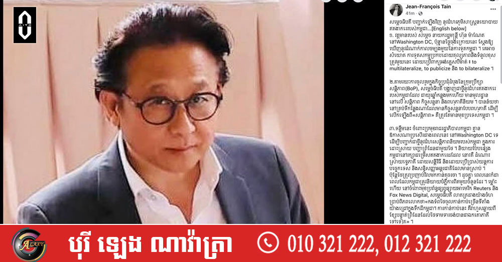 លោក ហ្សង់ ហ្រ្វង់ស័រតាន់៖ វត្តមានសម្តេចបវរធិបតី ហ៊ុន ម៉ាណែត លើទឹកដីអាម៉េរិក បញ្ជាក់នូវជំហរឥតងាករេរបស់កម្ពុជា ក្នុងនាមជាប្រទេសតូចដែលស្រឡាញ់សន្តិភាព (Video inside)