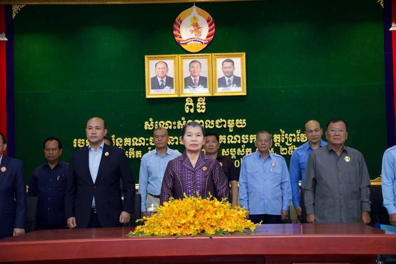 (ព្រៃវែង)៖ សម្តេចកិត្តិសង្គហបណ្ឌិត ម៉ែន សំអន អនុប្រធានគណបក្ស និងជាប្រធានគណៈចលនាមហាជន នៃគណៈកម្មាធិការកណ្តាលគណបក្សប្រជាជនកម្ពុជា នៅរសៀលថ្ងៃទី២១ ខែកុម្ភៈ ឆ្នាំ២០២៦ បានអញ្ជើញជាអធិបតីក្នុងពិធីសំណេះសំណាលជាមួយរចនាសម្ព័ន្ធគណៈចលនាមហាជន ចំណុះគណៈកម្មាធិការបក្សប្រជាជនកម្ពុជាខេត្តព្រៃវែង។