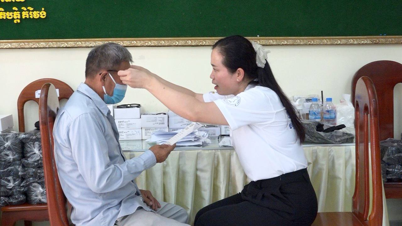 ក្រុមគ្រូពេទ្យនៃមន្ទីរពេទ្យព្រះអង្គឌួង ចុះពិនិត្យសុខភាពភ្នែក និងចែកវ៉ែនតាដោយឥគិតថ្លៃជូនពលរដ្ឋ ក្នុងស្រុកគិរីវង់ ខេត្តតាកែវ