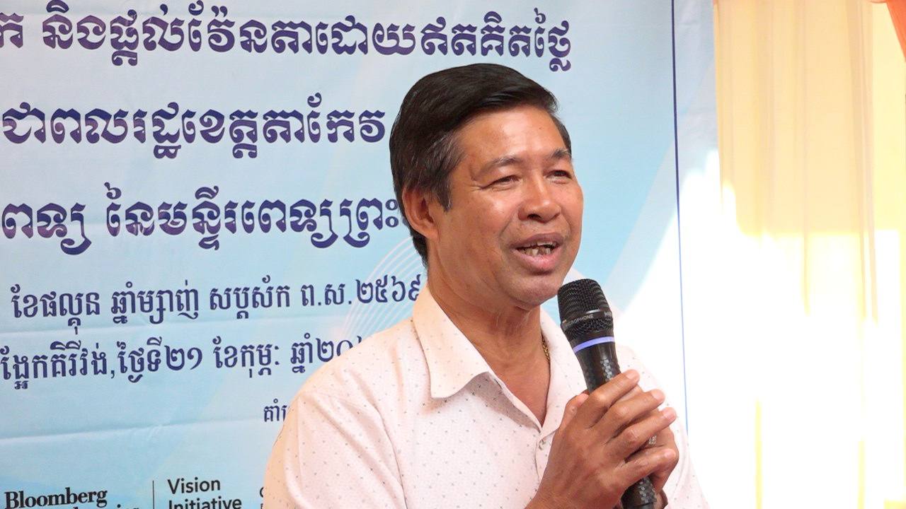 (តាកែវ)៖ មន្ទីរពេទ្យព្រះអង្គឌួង នៃក្រសួងសុខាភិបាល បានដឹកនាំក្រុមគ្រូពេទ្យចុះពិនិត្យសុខភាពភ្នែក ផ្តល់ថ្នាំបន្តក់ភ្នែក និងចែកវ៉ែនតា ដោយឥតគិតថ្លៃជូនបងប្អូនប្រជាពលរដ្ឋ រស់នៅក្នុងស្រុកគិរីវង់ ខេត្តតាកែវ។