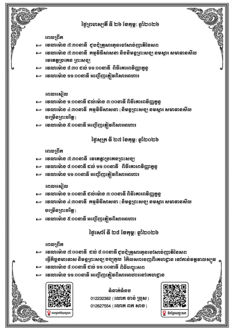 សពឯកឧត្តម សំ សារិត នឹងដង្ហែរនៅថ្ងៃទី២៨ ខែកុម្ភៈ ឆ្នាំ២០២៦ វេលាម៉ោង៨ព្រឹក តាមកម្មវិធីដូចខាងក្រោម៖