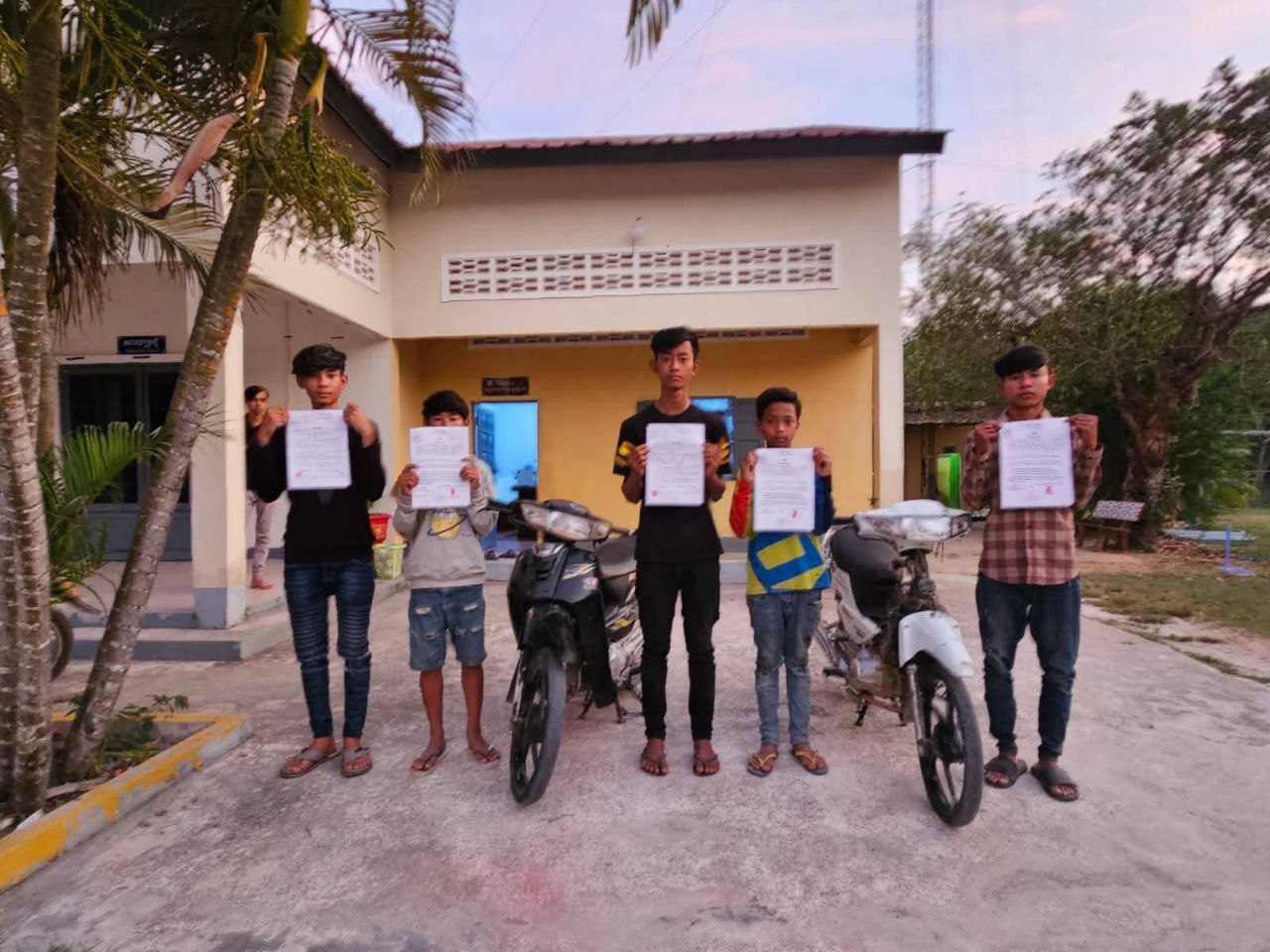 កម្លាំងជំនាញនគរបាលស្រុកស្វាយទាប ចុះបង្រ្កាបក្មេងទំនើងបង្ហោះម៉ូតូនៅតាមផ្លូវសាធារណៈ៥នាក់ យកមកអប់រំ និងធ្វើកិច្ចសន្យា