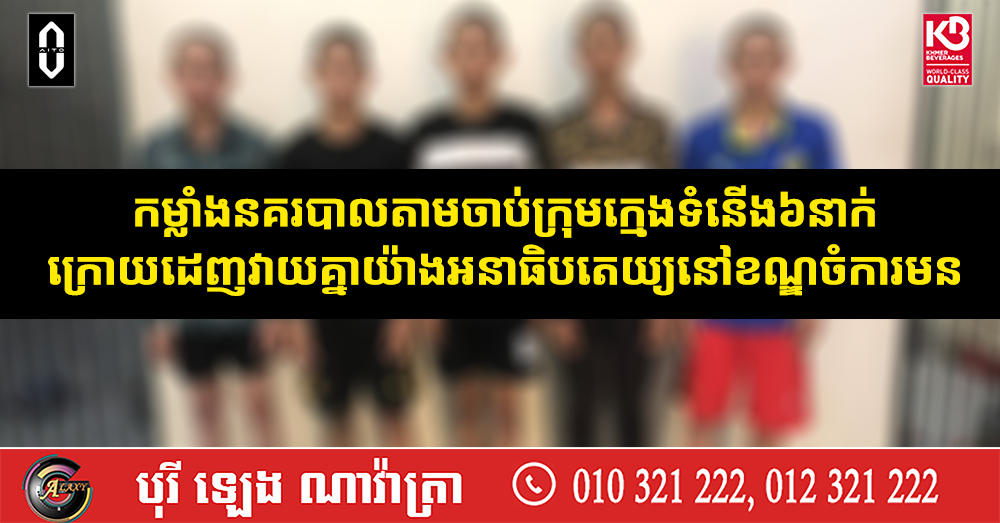 កម្លាំងនគរបាលតាមចាប់ក្រុមក្មេងទំនើង៦នាក់ ក្រោយដេញវាយគ្នាយ៉ាងអនាធិបតេយ្យនៅខណ្ឌចំការមន