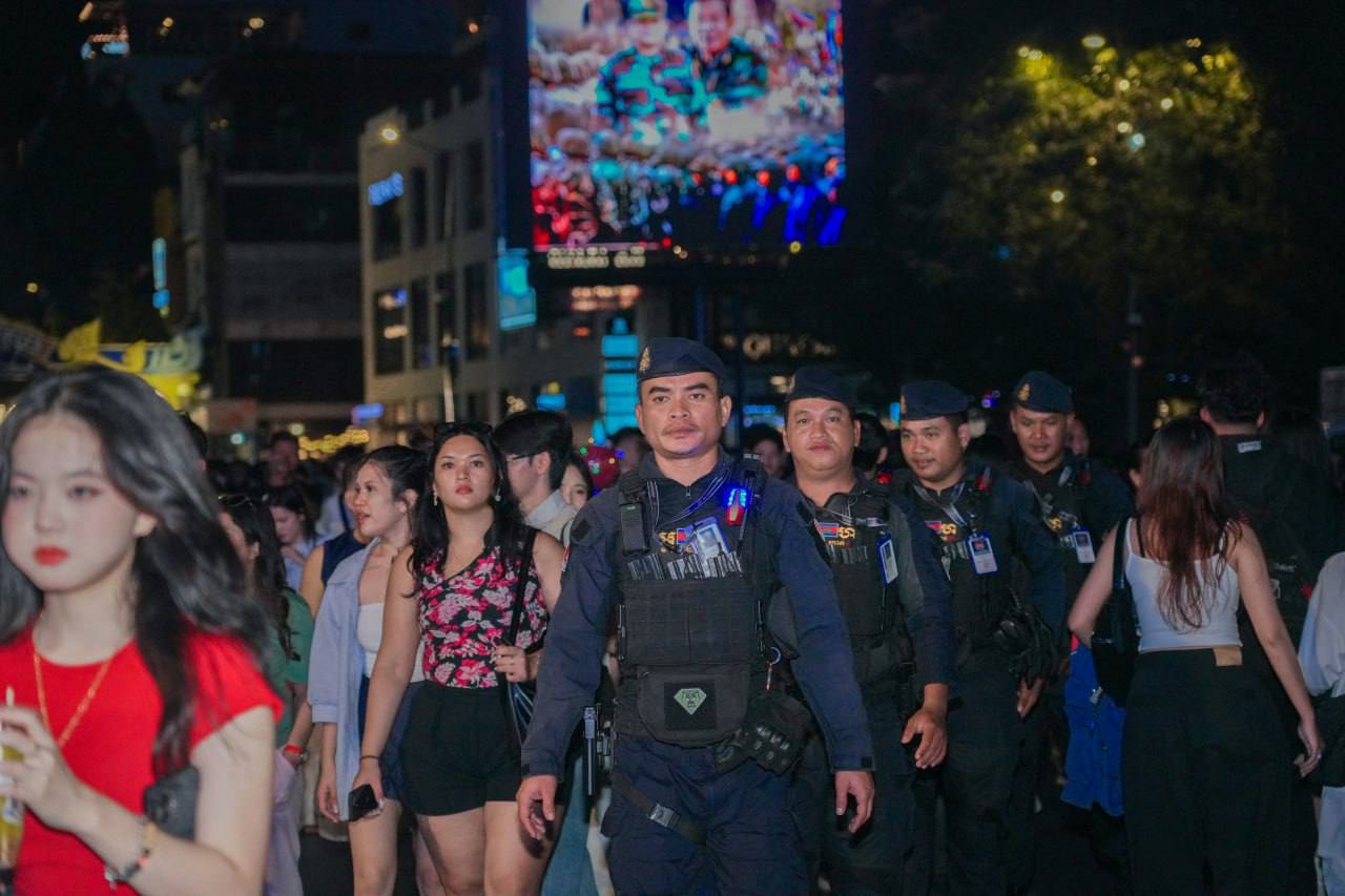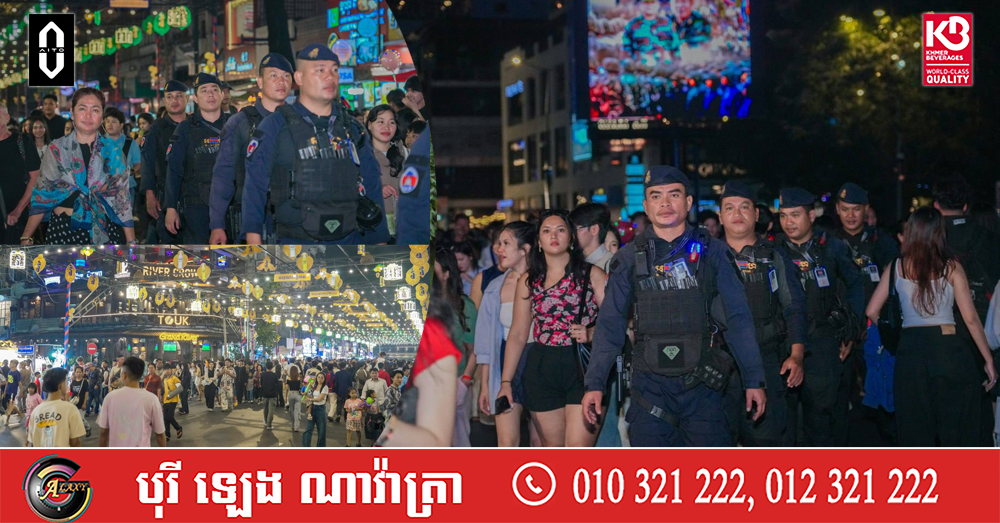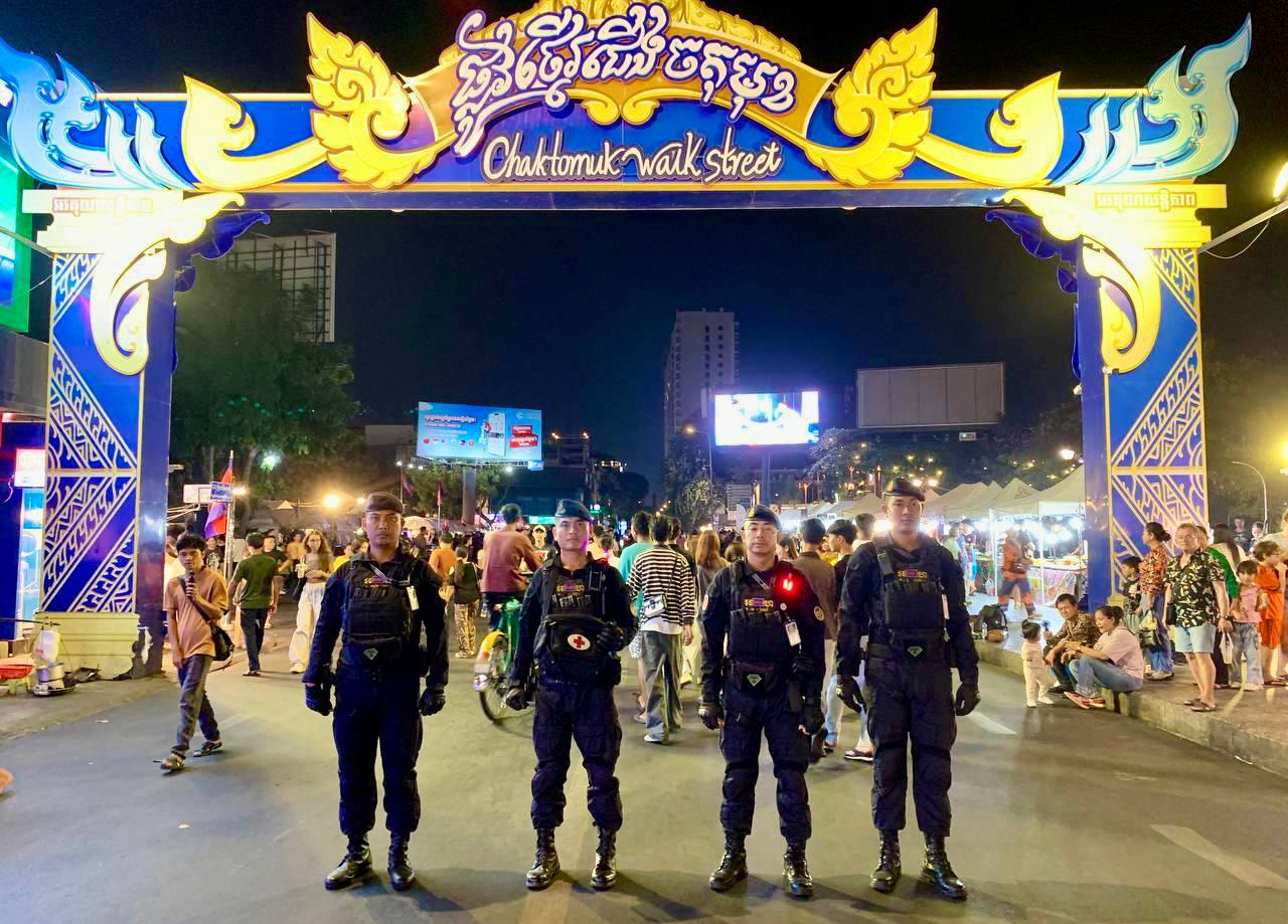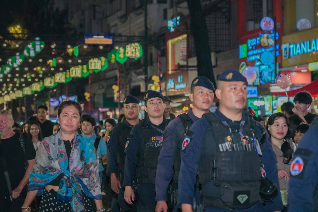 កម្លាំងកងរាជអាវុធហត្ថរាជធានីភ្នំពេញ ចូលរួមល្បាត ការពារសន្តិសុខ សុវត្ថិភាព ជូនបងប្អូនប្រជាពលរដ្ឋ ធ្វើដំណើរកំសាន្ត នៅតាមដងផ្លូវថ្មើរជើង (Walk Street)