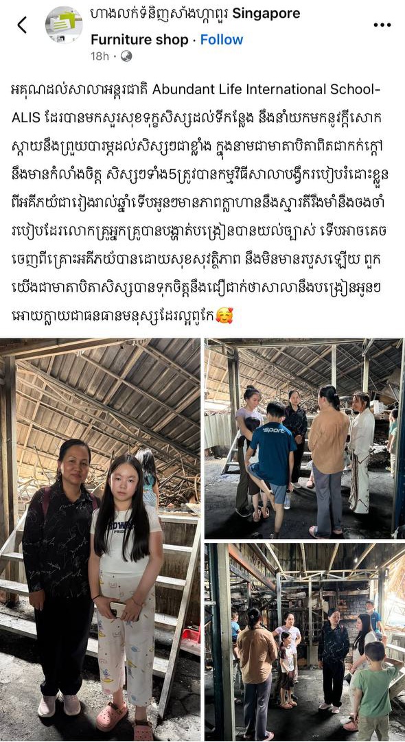 អ្វីដែលគួរឱ្យចាប់អារម្មណ៍ គឺការផុសហ្វេសប៊ុករបស់ជនរងគ្រោះពីអគ្គិភ័យកើតឡើង នៅម្តុំស្ទឹងមានជ័យ ស្តីពីការរៀន ការរត់គេចចេញពីគ្រោះមហន្តរាយកើតឡើង។ គាត់បានលើកឡើងថា «សិស្សទាំង៥រូប ដែលត្រូវបានកម្មវិធីសិក្សាសាលាបង្រៀនរបៀបរំដោះខ្លួនពីអគ្គីភ័យជារៀងរាល់ឆ្នាំ ទើបអូនៗមានភាពក្លាហាន ស្មារតីរឹងមាំ និងចងចាំរបៀបដែលលោកគ្រូ អ្នកគ្រូបានបង្ហាត់បង្រៀន បានយល់ច្បាស់ទើបអាចគេចចេញពីគ្រោះអគ្គិភ័យបានដោយសុខសុវត្ថិភាព និងមិនមានរបួសឡើយ»។