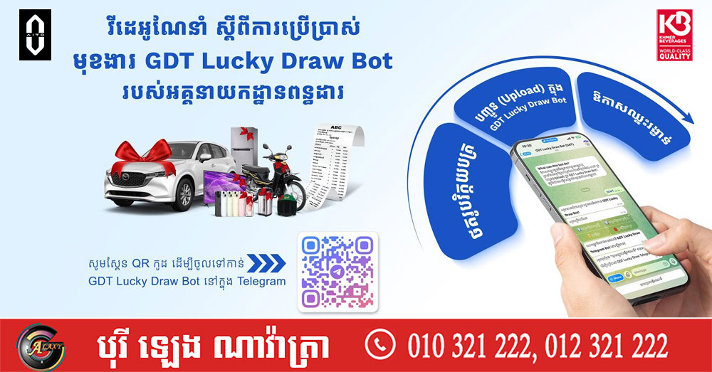 កាន់តែងាយស្រួល! អគ្គនាយកដ្ឋានពន្ធដារ ចេញវីដេអូណែនាំ ស្តីពី ការប្រើប្រាស់កម្មវិធី GDT Lucky Draw Bot