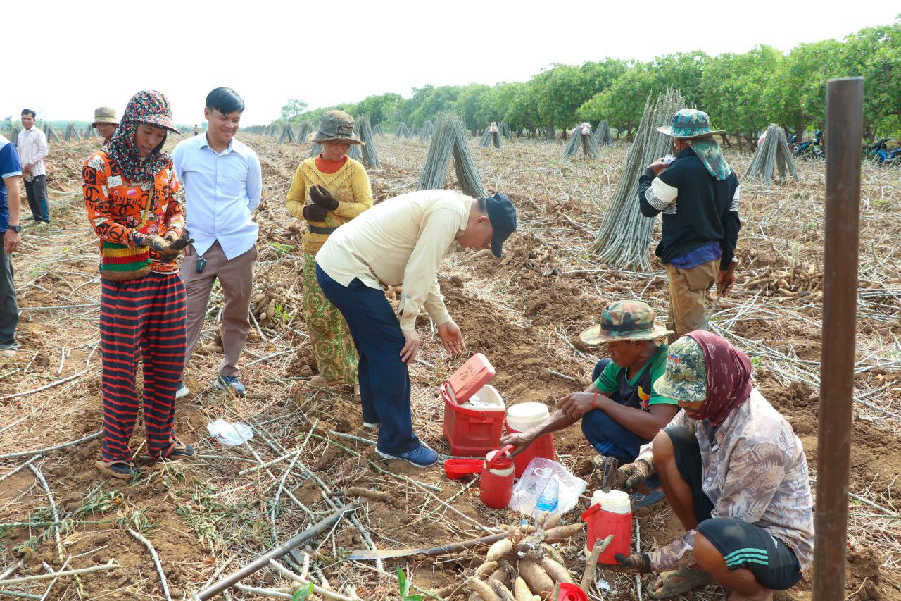 អភិបាលស្រុកតាំងគោក ដឹកនាំក្រុមការងារចុះពិនិត្យស្ថានភាពរស់នៅ និងការដាំដុះដំណាំតាមចម្ការរបស់កសិករនៅក្នុងឃុំទ្រៀល ខេត្តកំពង់ធំ