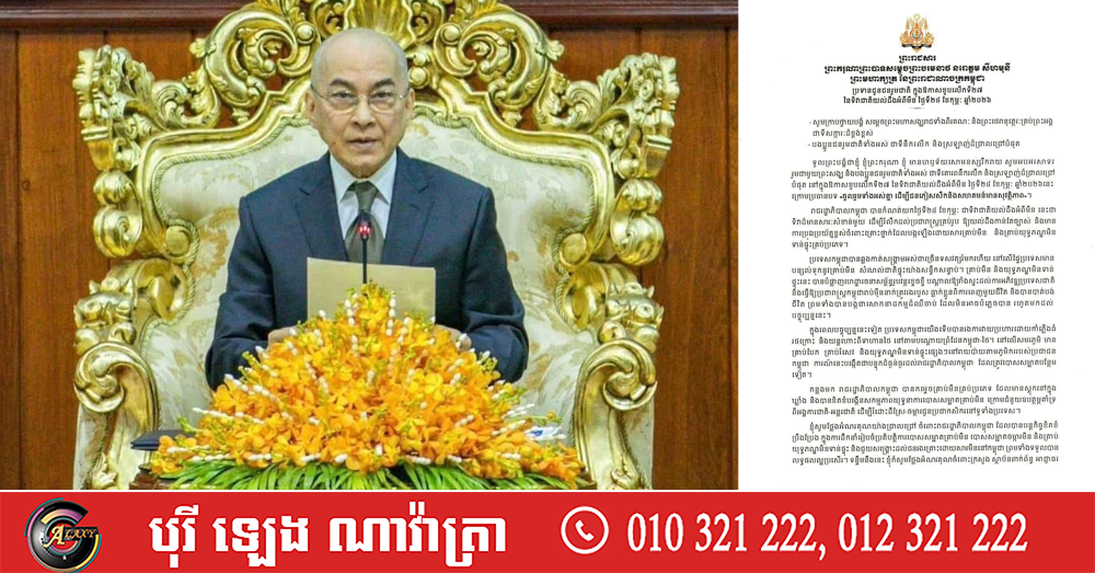 (ភ្នំពេញ)៖ ព្រះករុណា ព្រះបាទសម្តេចព្រះបរមនាថ នរោត្តម សីហមុនី ព្រះមហាក្សត្រនៃកម្ពុជា បានចេញព្រះរាជសារលិខិត ផ្ញើជូនជនរួមជាតិ ក្នុងឱកាសប្រារព្ធខួបលើកទី២៧ នៃទិវាជាតិយល់ដឹងអំពីមីន ថ្ងៃទី២៤ ខែកុម្ភៈ ឆ្នាំ២០២៦។