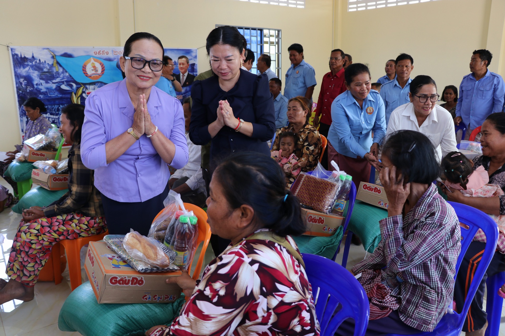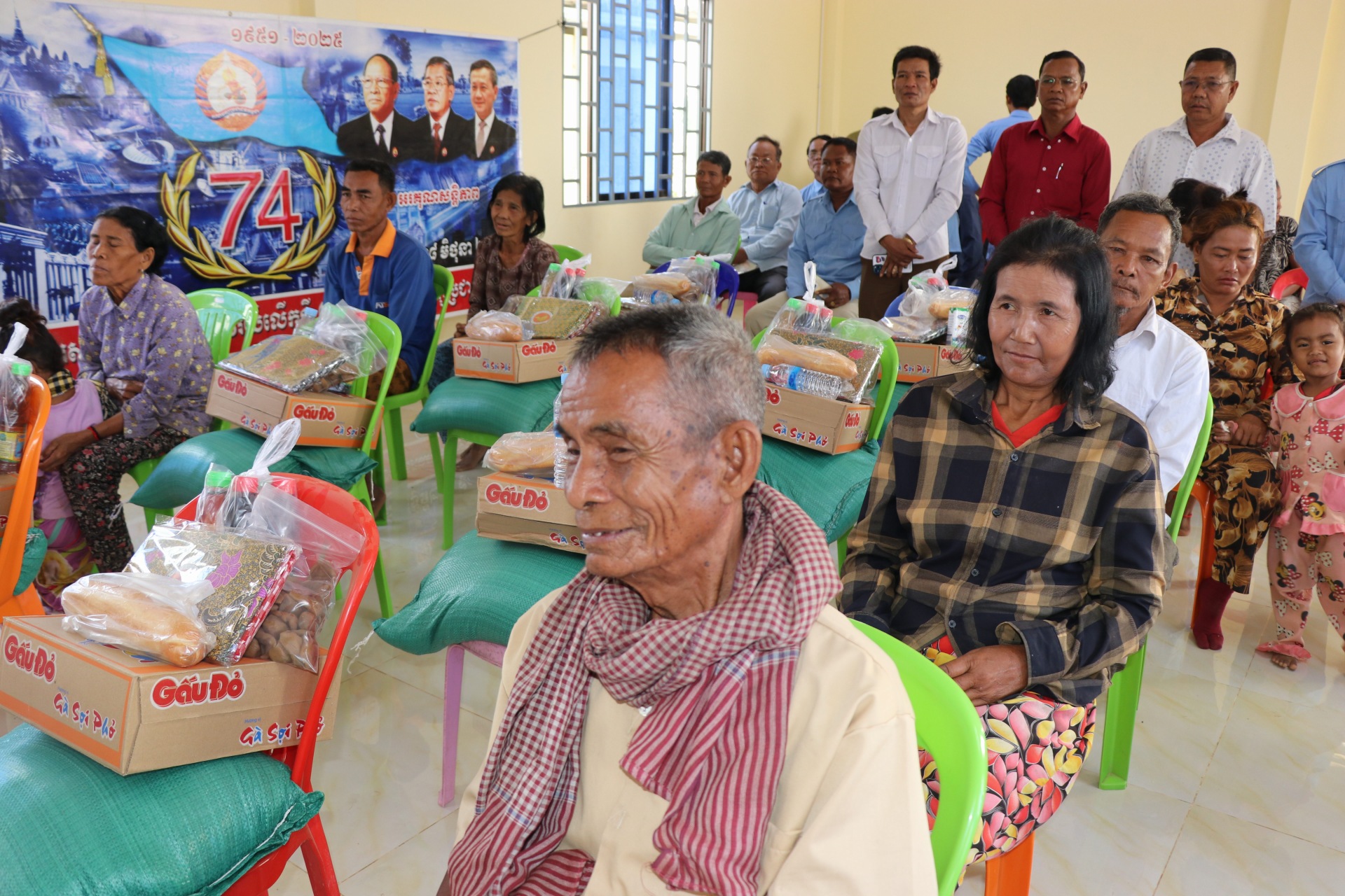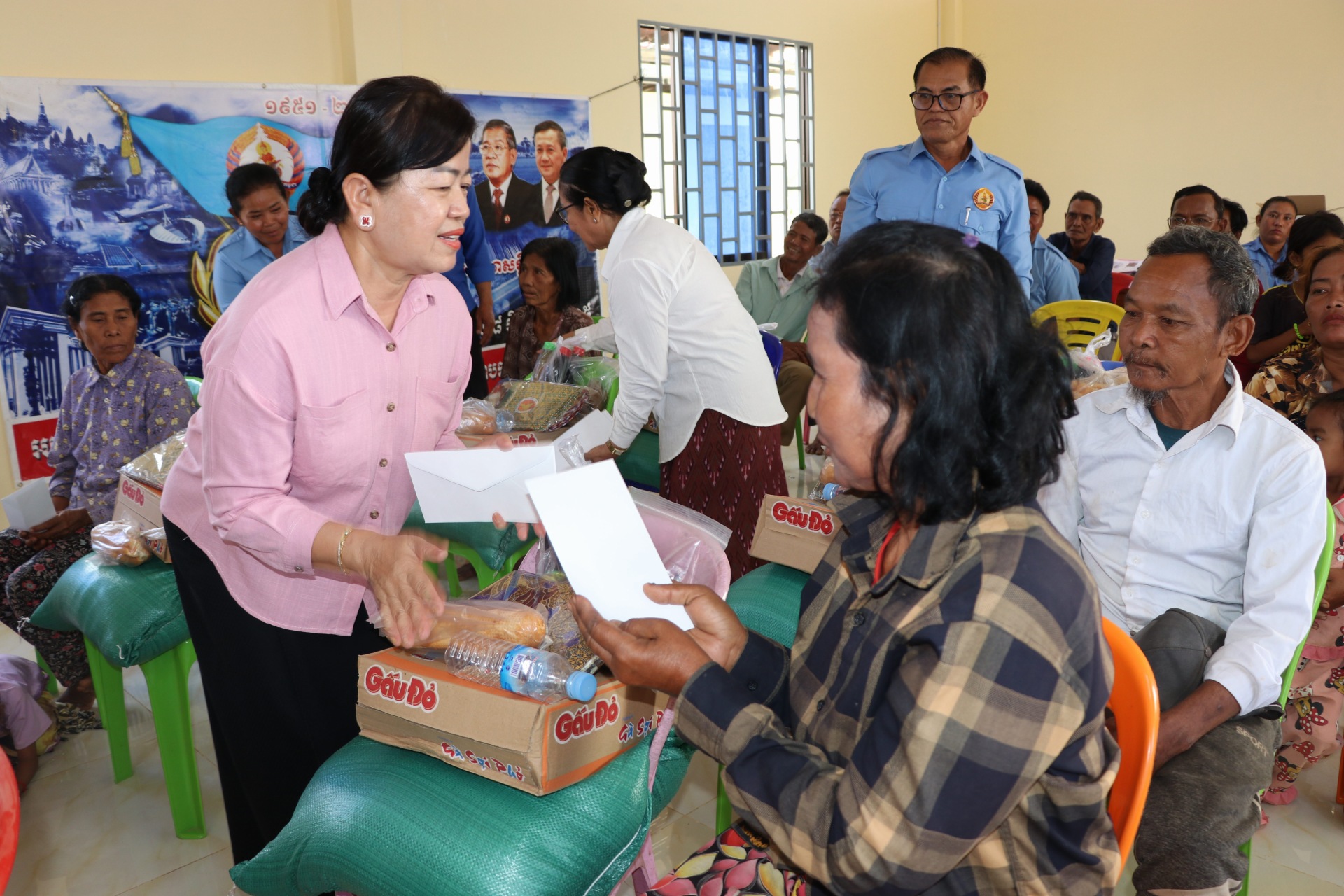 សូមបញ្ជាក់ថា គ្រួសារដែលទទួលបានការឧបត្ថមមានចំនួន២៥គ្រួសារ ដោយក្នុង១គ្រួសារៗទទួលបាន ក្រមា១ សារុង១ អង្ករ២០គីឡូ ទឹកត្រីទឹកស៊ីវអ៊ីវ៤ដប មី១កេះ និងថវិកាមួយចំនួន៕