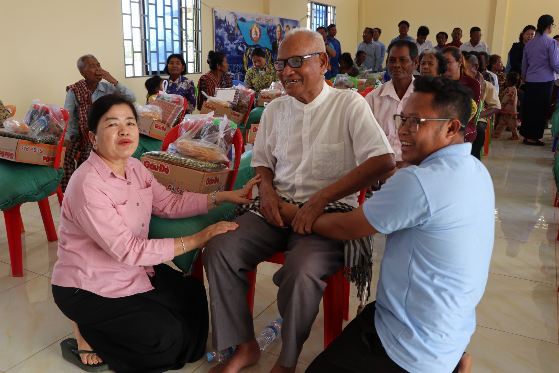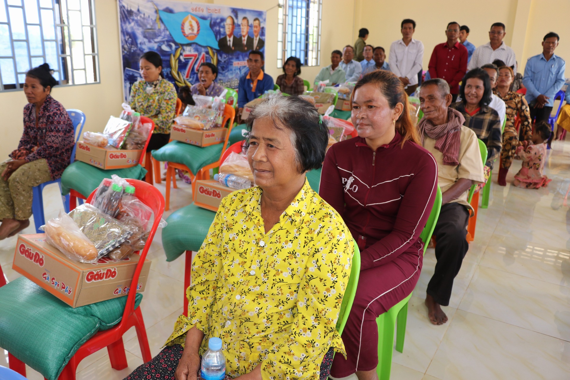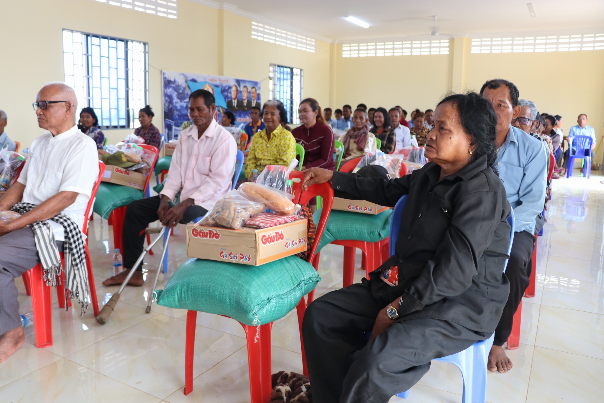 សូមបញ្ជាក់ថា គ្រួសារដែលទទួលបានការឧបត្ថមមានចំនួន២៥គ្រួសារ ដោយក្នុង១គ្រួសារៗទទួលបាន ក្រមា១ សារុង១ អង្ករ២០គីឡូ ទឹកត្រីទឹកស៊ីវអ៊ីវ៤ដប មី១កេះ និងថវិកាមួយចំនួន៕
