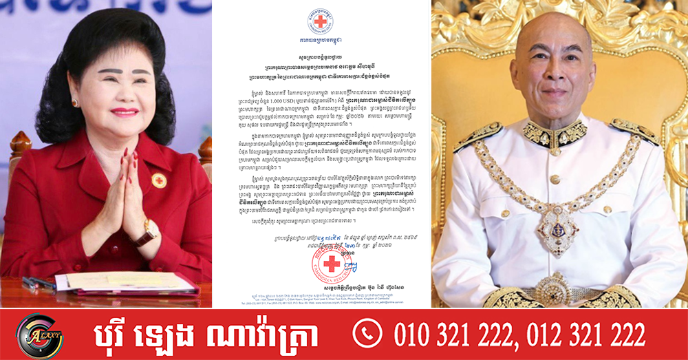 (ភ្នំពេញ)៖ សម្ដេចកិត្តិព្រឹទ្ធបណ្ឌិត ប៊ុន រ៉ានី ហ៊ុនសែន ប្រធានកាកបាទក្រហមកម្ពុជា នៅថ្ងៃទី២៣ ខែកុម្ភៈ ឆ្នាំ២០២៦នេះ បានក្រាបបង្គំទូលថ្វាយនូវសារលិខិតថ្លែងអំណរព្រះរាជគុណថ្វាយ ព្រះករុណា ព្រះបាទសម្តេចព្រះបរមនាថ នរោត្តម សីហមុនី ព្រះមហាក្សត្រនៃព្រះរាជាណាចក្រកម្ពុជា ជាទីគោរពសក្ការៈដ៏ខ្ពង់ខ្ពស់បំផុត ដែលព្រះអង្គសព្វព្រះរាជហឫទ័យប្រោសព្រះរាជូបត្ថម្ភនូវព្រះរាជទ្រព្យចំនួន ១ពាន់ដុល្លារ ចំពោះកាកបាទក្រហមកម្ពុជា សម្រាប់ខែកុម្ភៈ ឆ្នាំ២០២៦។