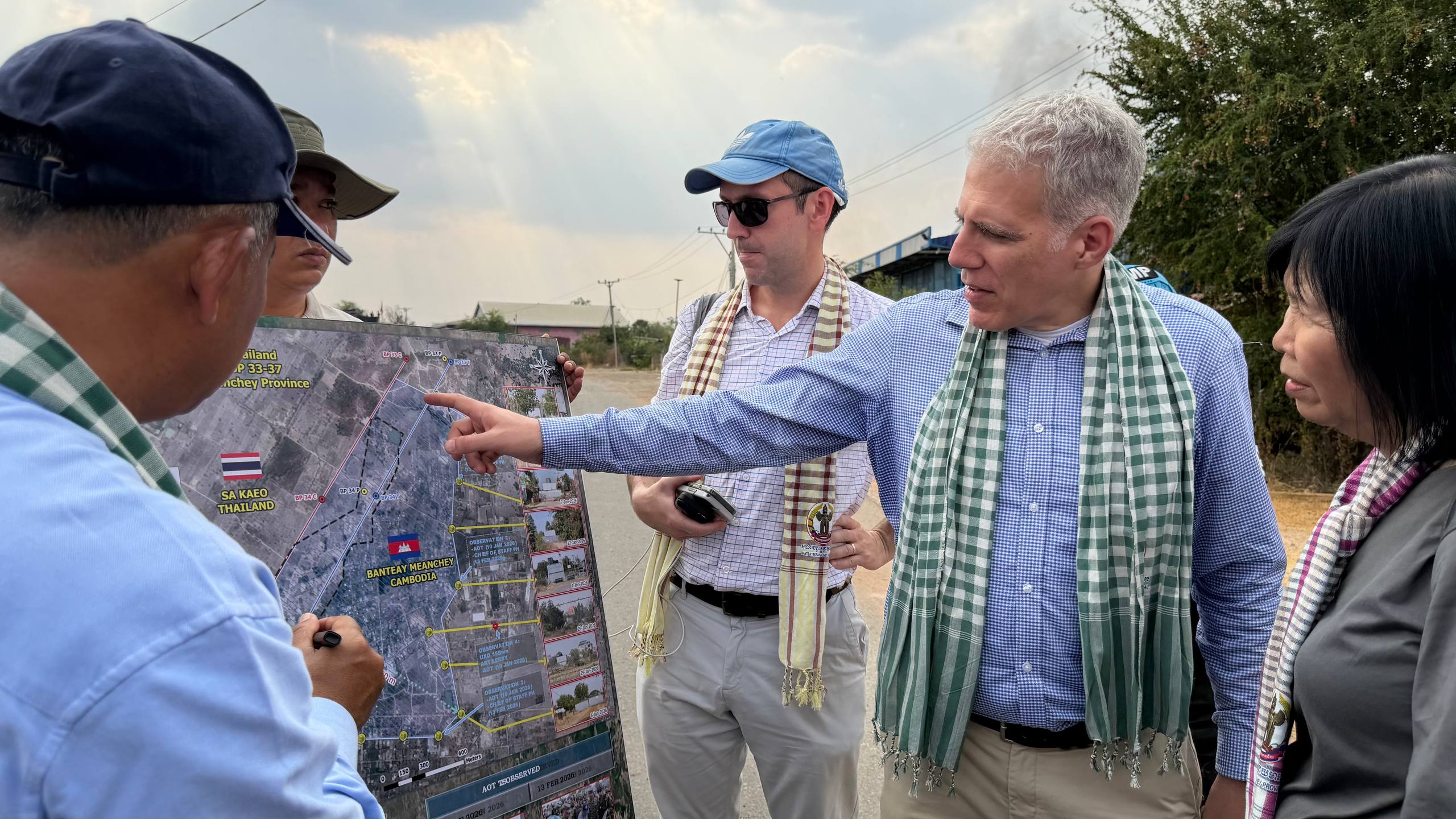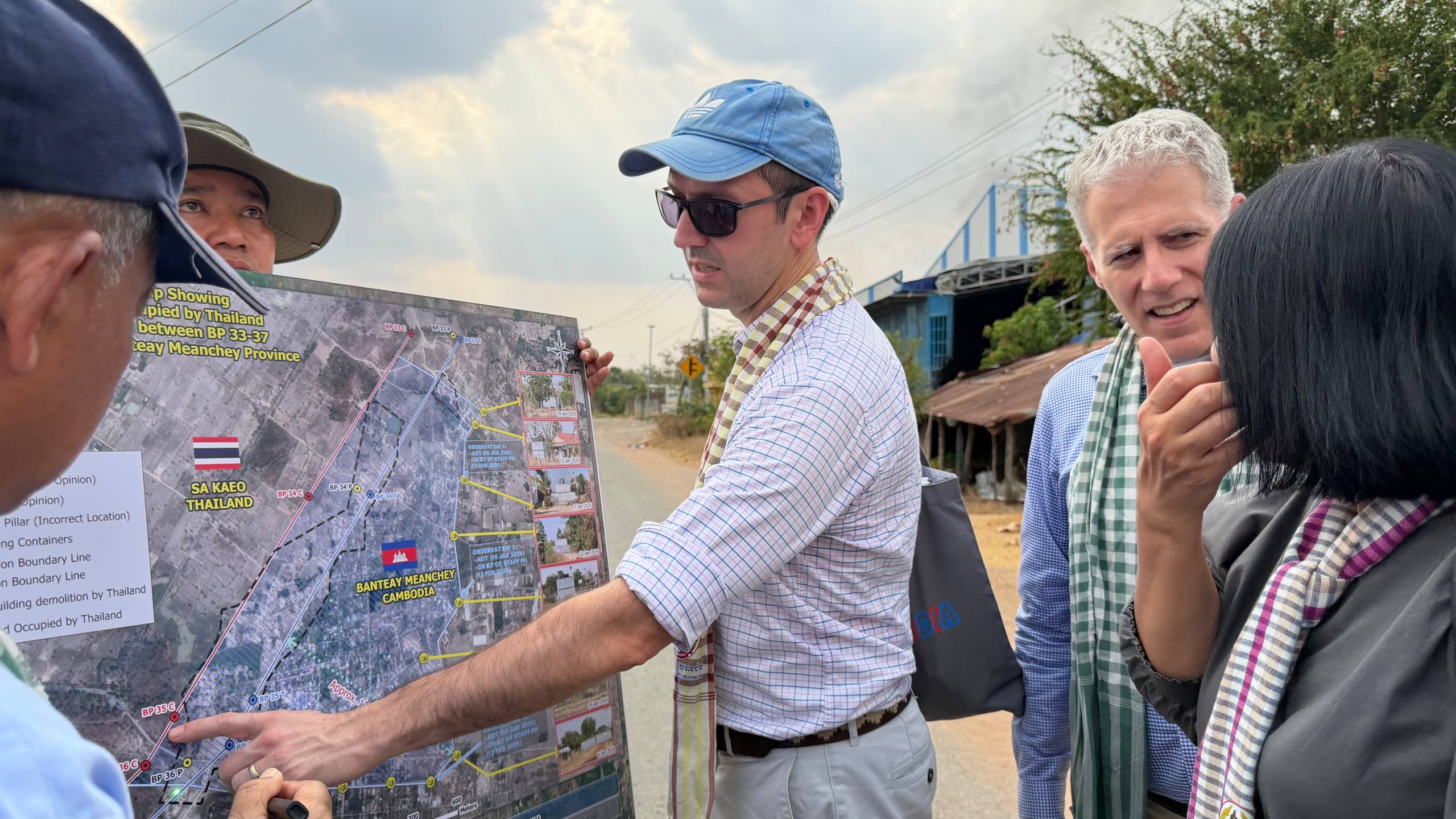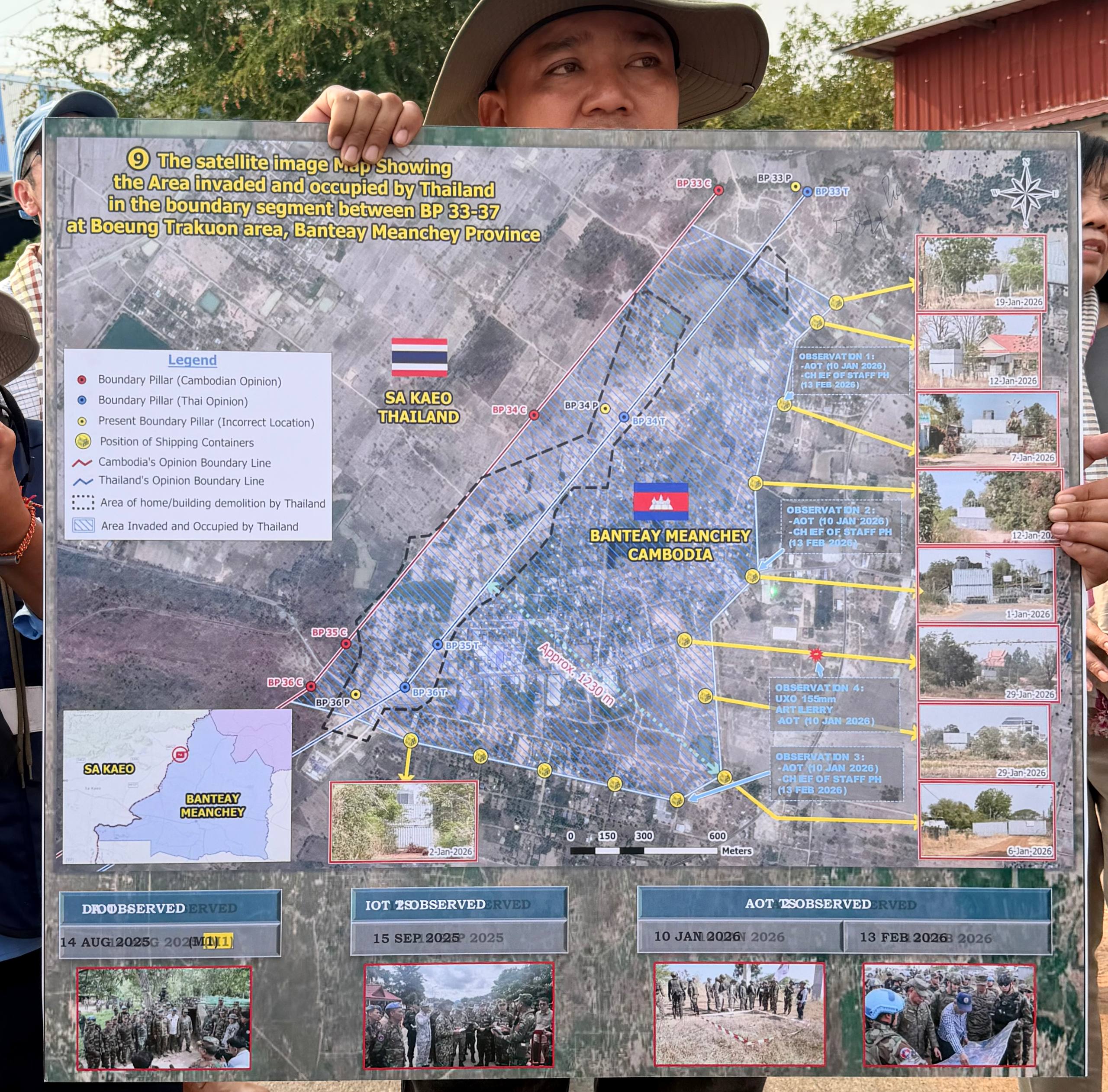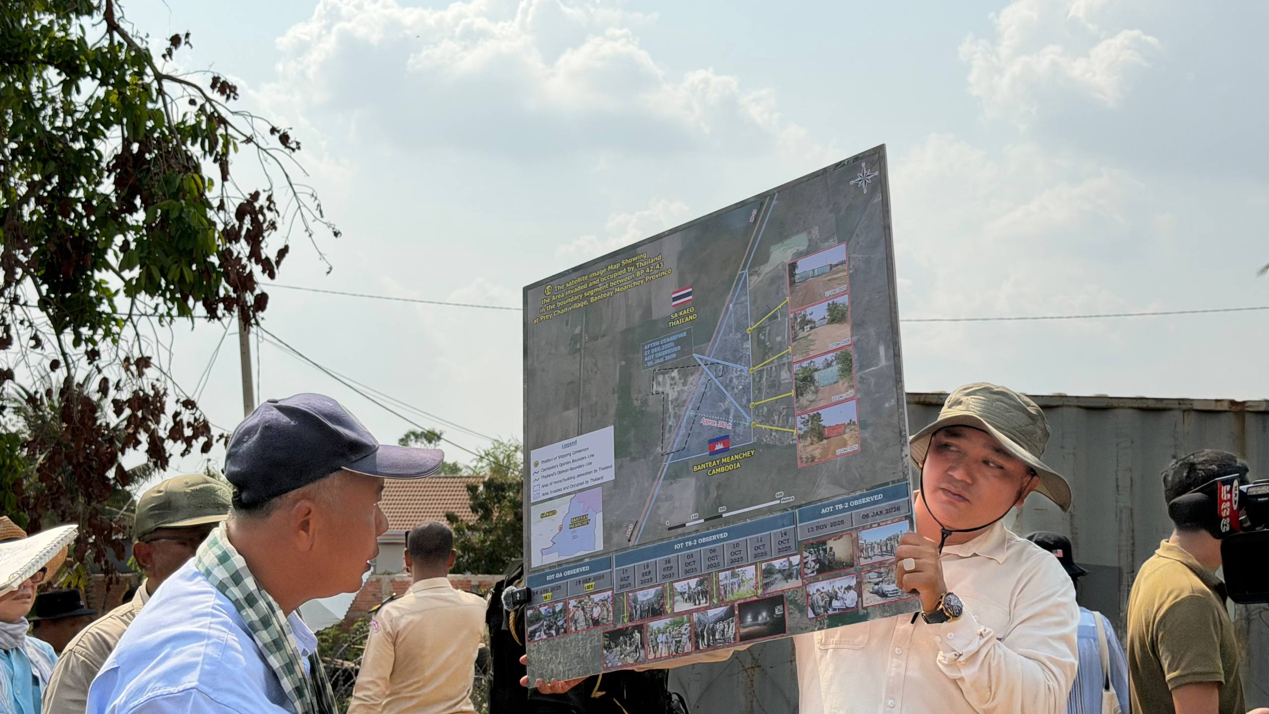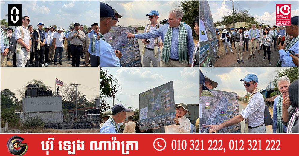 (ព្រំដែន)៖ នៅថ្ងៃទី២៣ ខែកុម្ភៈ ឆ្នាំ២០២៦នេះ បណ្តាឯកអគ្គរាជទូត ឯកអគ្គរដ្ឋទូត តំណាងទូត និងបណ្តាអង្គការអន្តរជាតិនានា ប្រចាំកម្ពុជា បានចុះពិនិត្យដោយផ្ទាល់នៅតាមគោលដៅដែលយោធាឈ្លានពានថៃ បានរាយបន្លាលួស និងដាក់ទូកុងតឺន័រព័ទ្ធយកដី និងផ្ទះប្រជាពលរដ្ឋខ្មែរស្លូតត្រង់ នៅតំបន់បឹងក្រកួន ស្រុកថ្មពួក ភូមិជោគជ័យ និងភូមិព្រៃចាន់ ក្នុងឃុំអូរបី ស្រុកអូរជ្រៅ ខេត្តបន្ទាយមានជ័យ។
