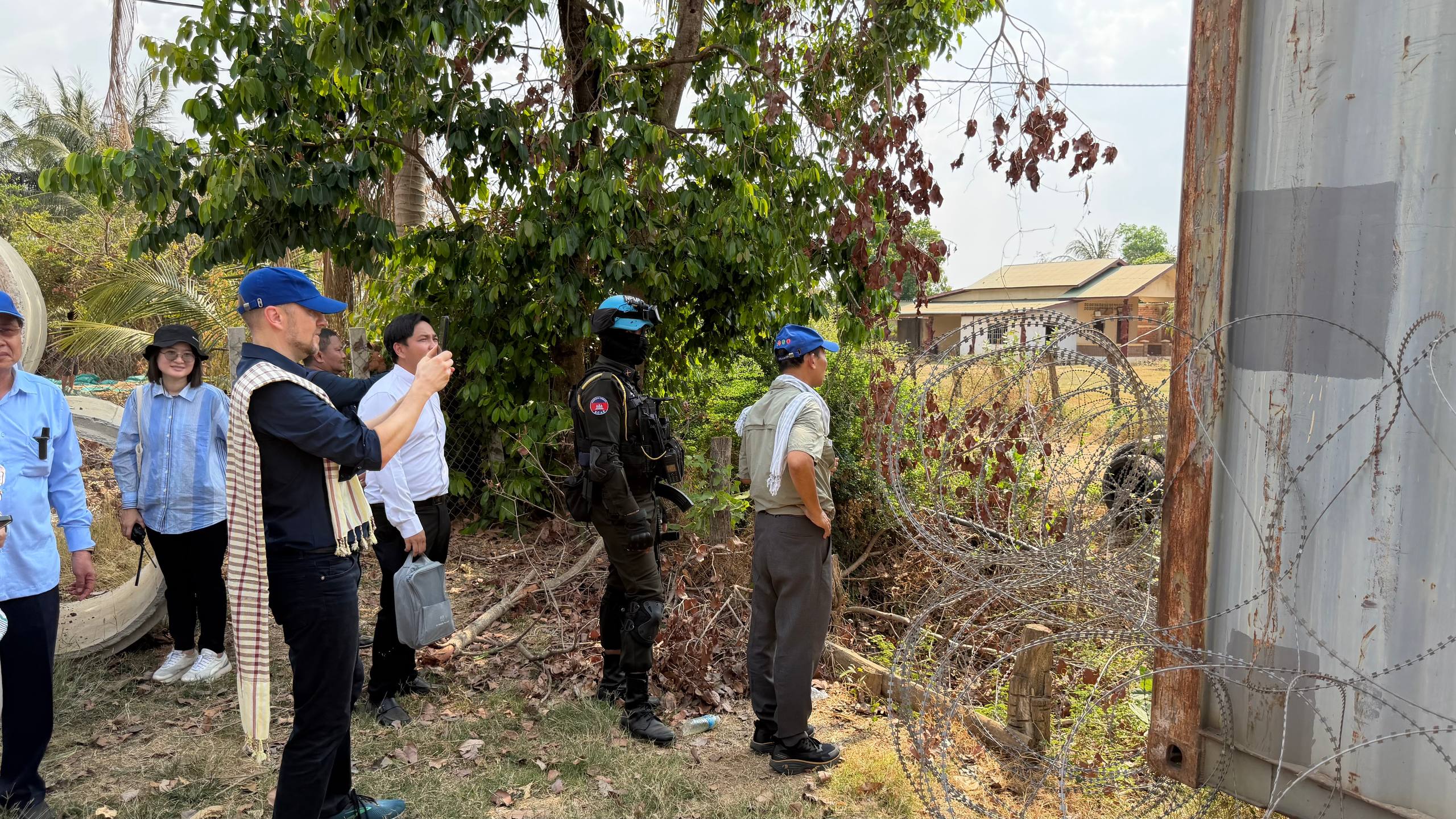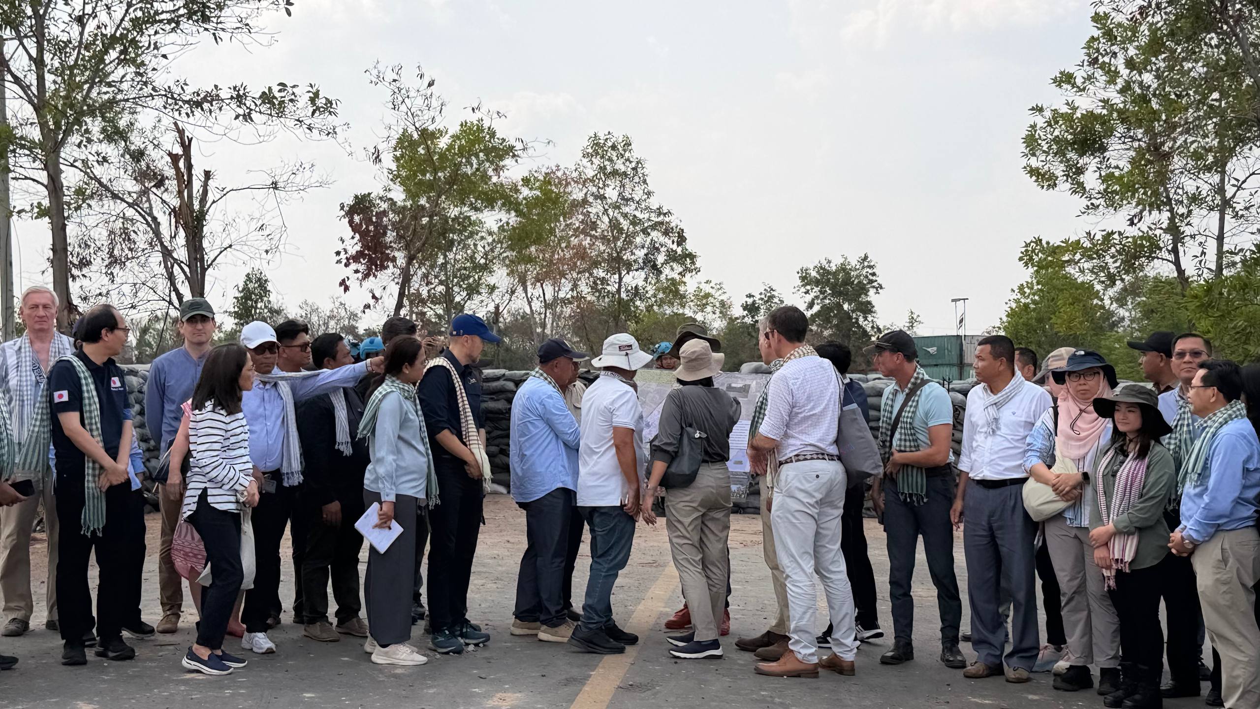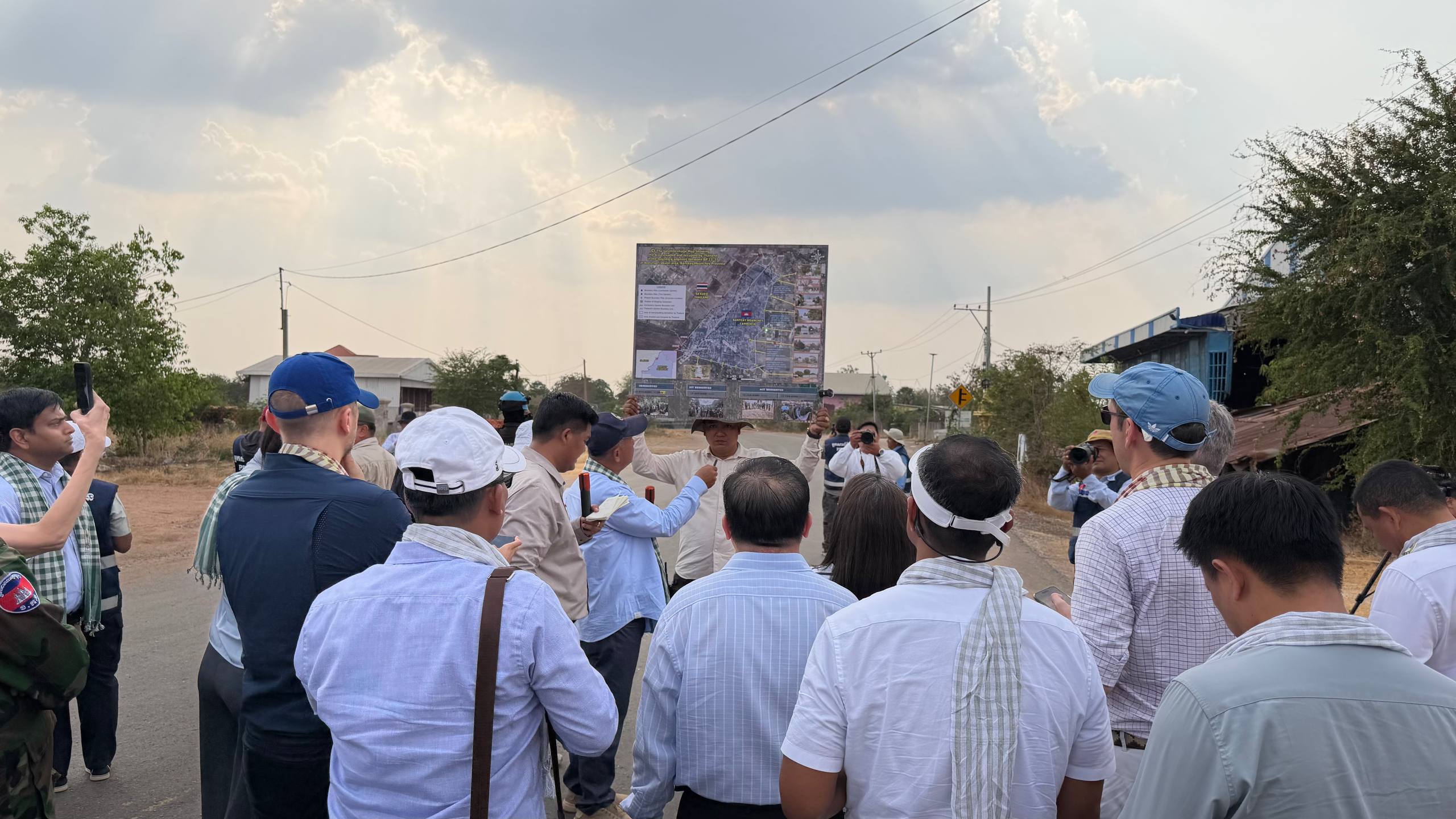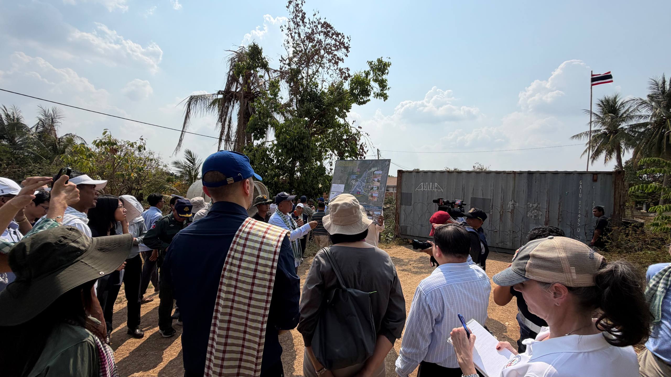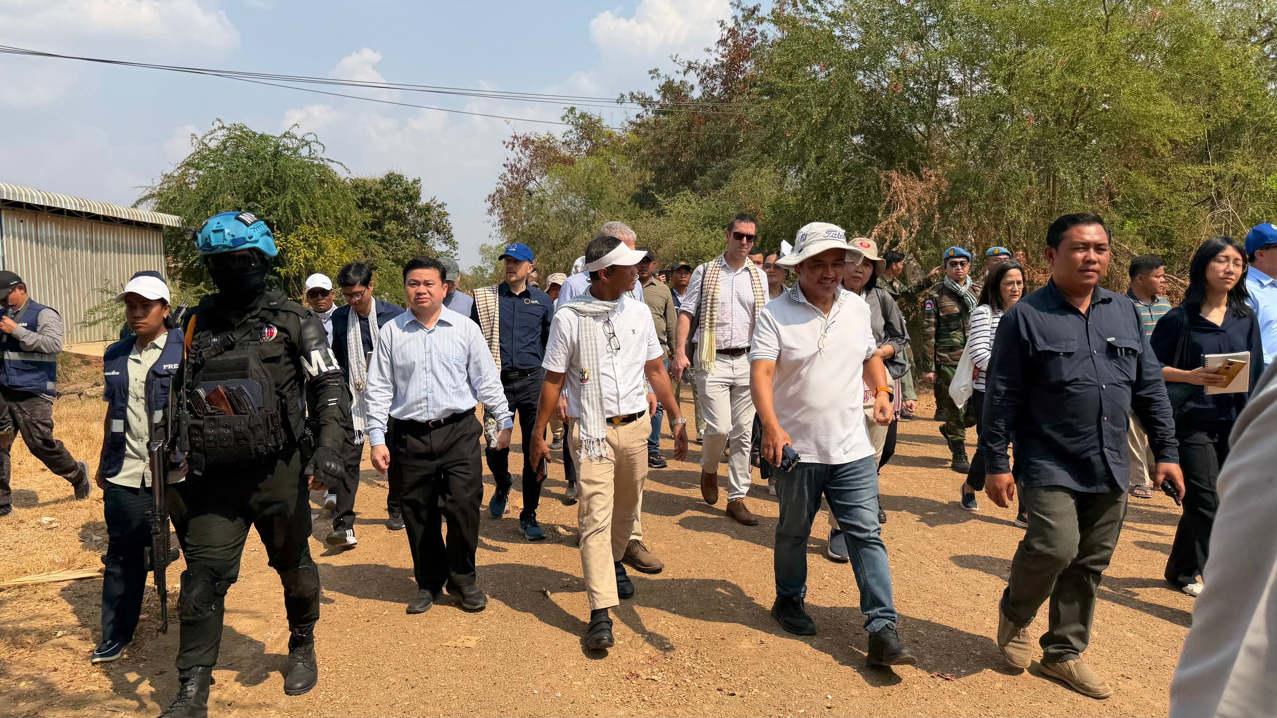 (ព្រំដែន)៖ នៅថ្ងៃទី២៣ ខែកុម្ភៈ ឆ្នាំ២០២៦នេះ បណ្តាឯកអគ្គរាជទូត ឯកអគ្គរដ្ឋទូត តំណាងទូត និងបណ្តាអង្គការអន្តរជាតិនានា ប្រចាំកម្ពុជា បានចុះពិនិត្យដោយផ្ទាល់នៅតាមគោលដៅដែលយោធាឈ្លានពានថៃ បានរាយបន្លាលួស និងដាក់ទូកុងតឺន័រព័ទ្ធយកដី និងផ្ទះប្រជាពលរដ្ឋខ្មែរស្លូតត្រង់ នៅតំបន់បឹងក្រកួន ស្រុកថ្មពួក ភូមិជោគជ័យ និងភូមិព្រៃចាន់ ក្នុងឃុំអូរបី ស្រុកអូរជ្រៅ ខេត្តបន្ទាយមានជ័យ។