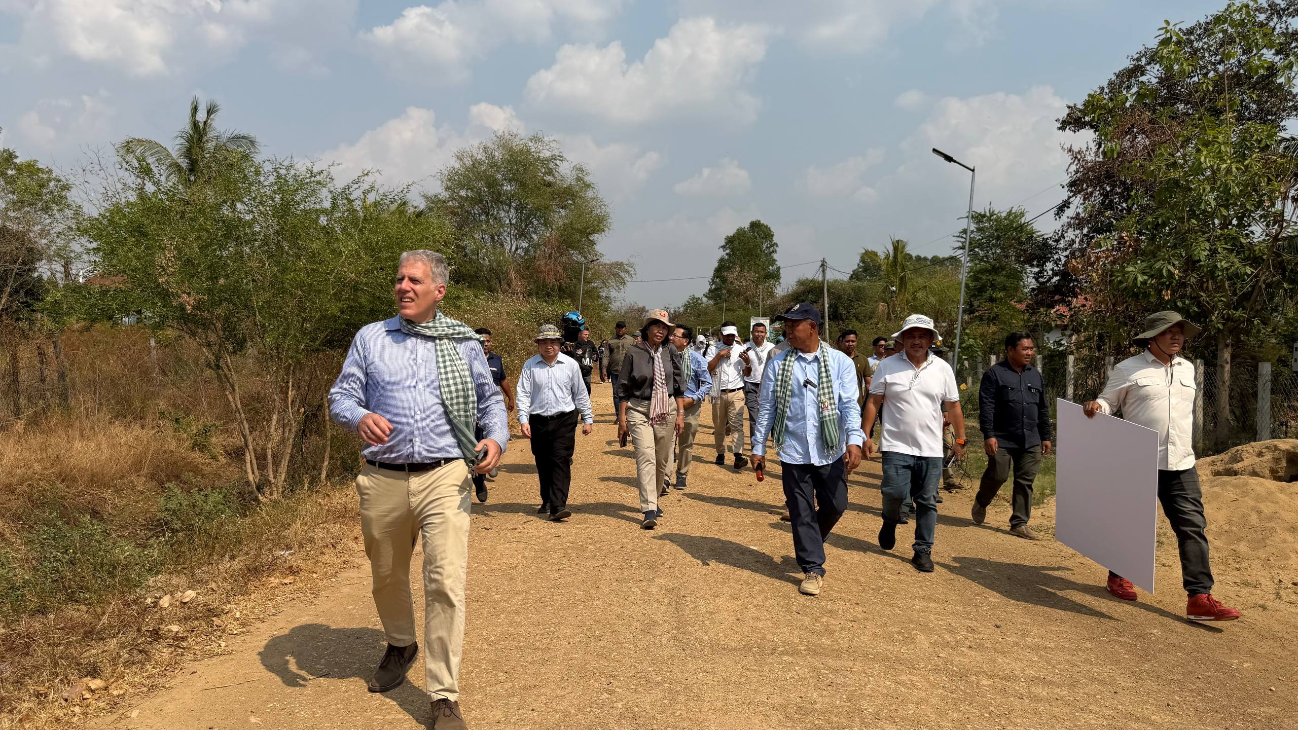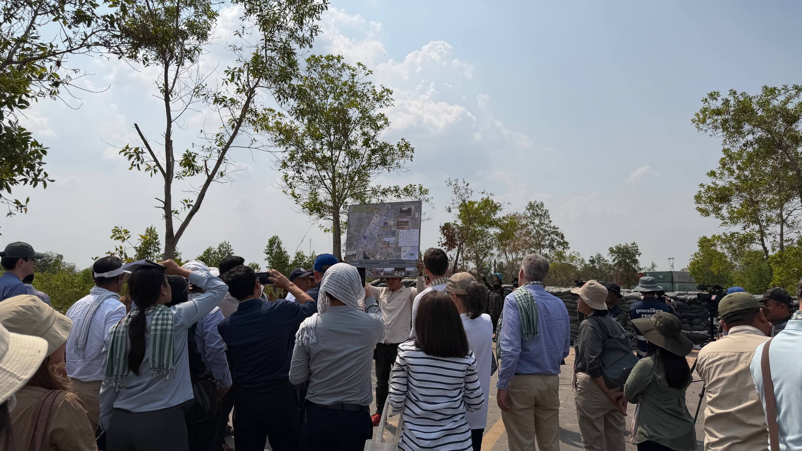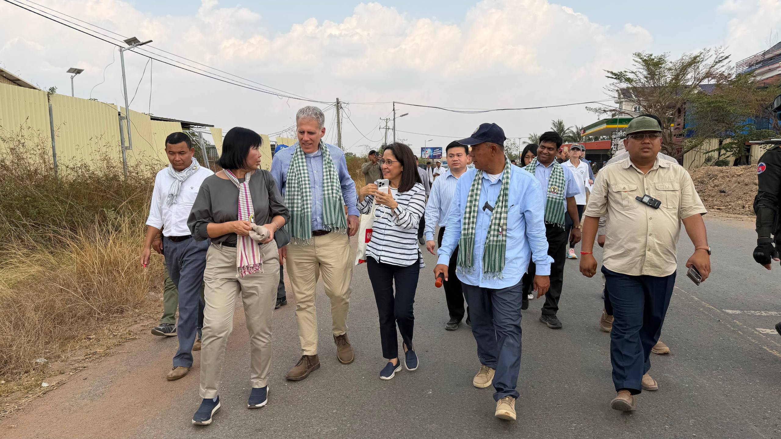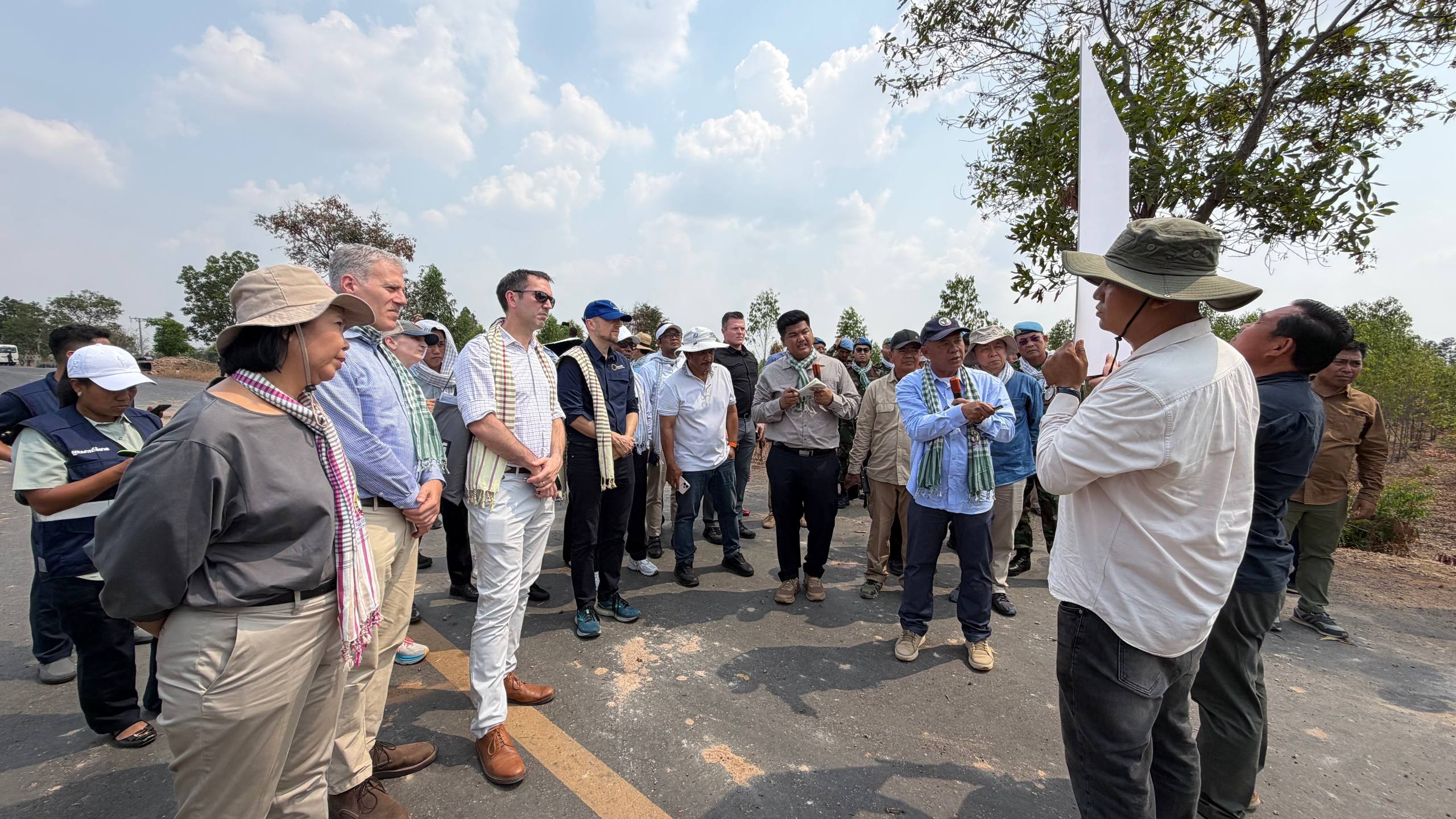 (ព្រំដែន)៖ នៅថ្ងៃទី២៣ ខែកុម្ភៈ ឆ្នាំ២០២៦នេះ បណ្តាឯកអគ្គរាជទូត ឯកអគ្គរដ្ឋទូត តំណាងទូត និងបណ្តាអង្គការអន្តរជាតិនានា ប្រចាំកម្ពុជា បានចុះពិនិត្យដោយផ្ទាល់នៅតាមគោលដៅដែលយោធាឈ្លានពានថៃ បានរាយបន្លាលួស និងដាក់ទូកុងតឺន័រព័ទ្ធយកដី និងផ្ទះប្រជាពលរដ្ឋខ្មែរស្លូតត្រង់ នៅតំបន់បឹងក្រកួន ស្រុកថ្មពួក ភូមិជោគជ័យ និងភូមិព្រៃចាន់ ក្នុងឃុំអូរបី ស្រុកអូរជ្រៅ ខេត្តបន្ទាយមានជ័យ។