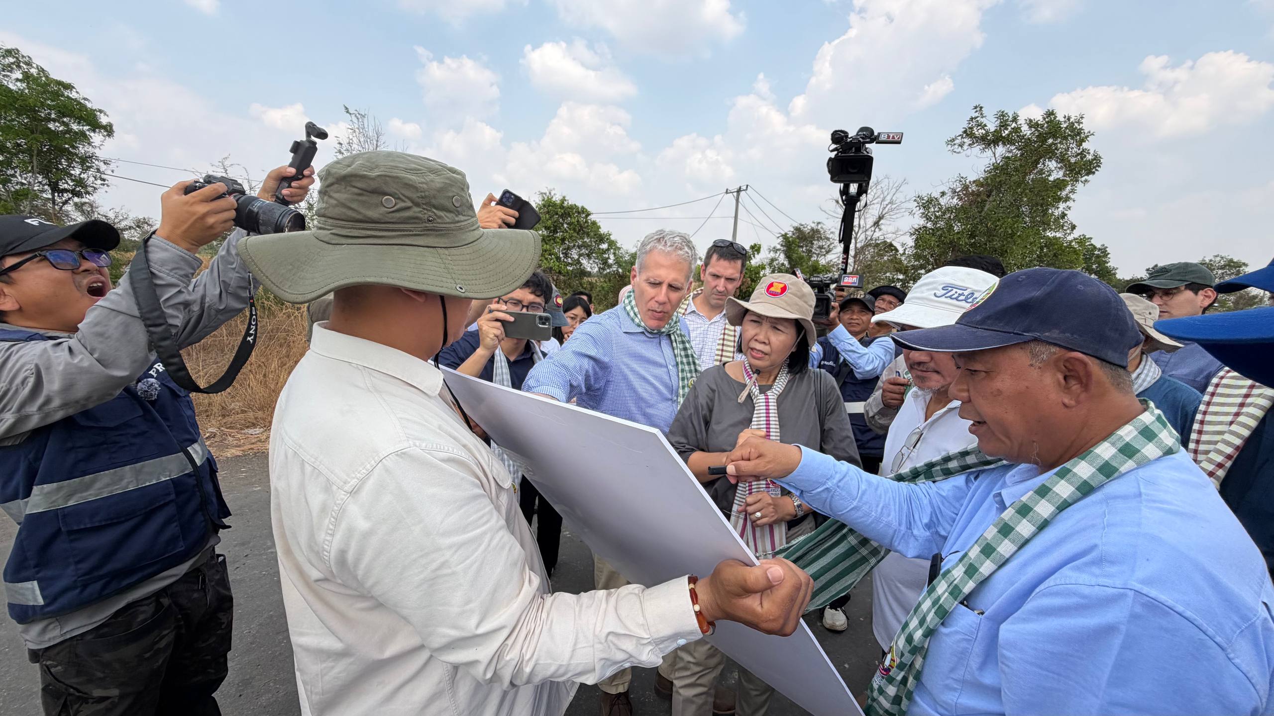 អង្គទូត និងអង្គការអន្តរជាតិនានាប្រចាំកម្ពុជា ចុះពិនិត្យទីតាំងដែលយោធាឈ្លានពានថៃ រាយបន្លាលួស ដាក់ទូកុងតឺន័រព័ទ្ធយកដី និងផ្ទះពលរដ្ឋខ្មែរនៅតំបន់បឹងក្រកួន ភូមិជោគជ័យ និងភូមិព្រៃចាន់