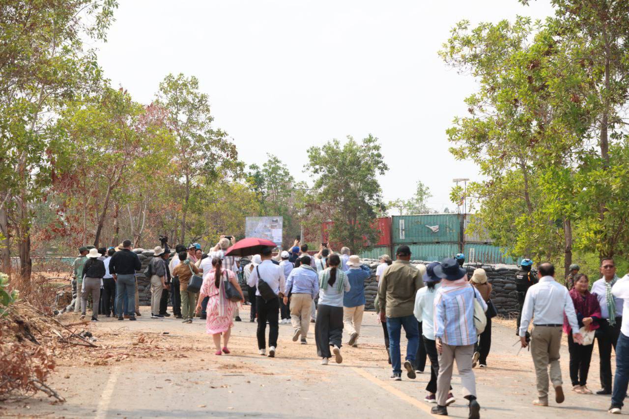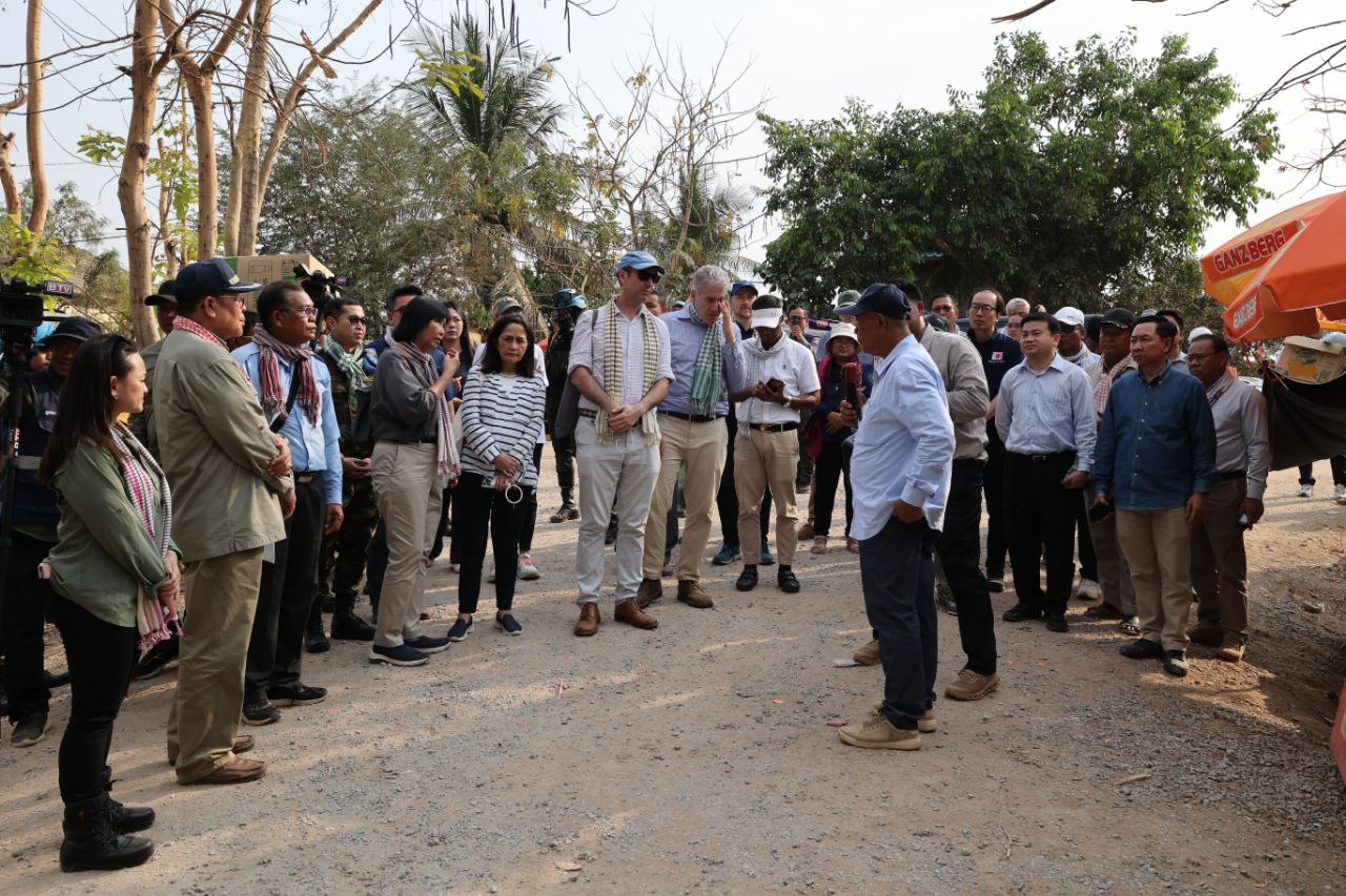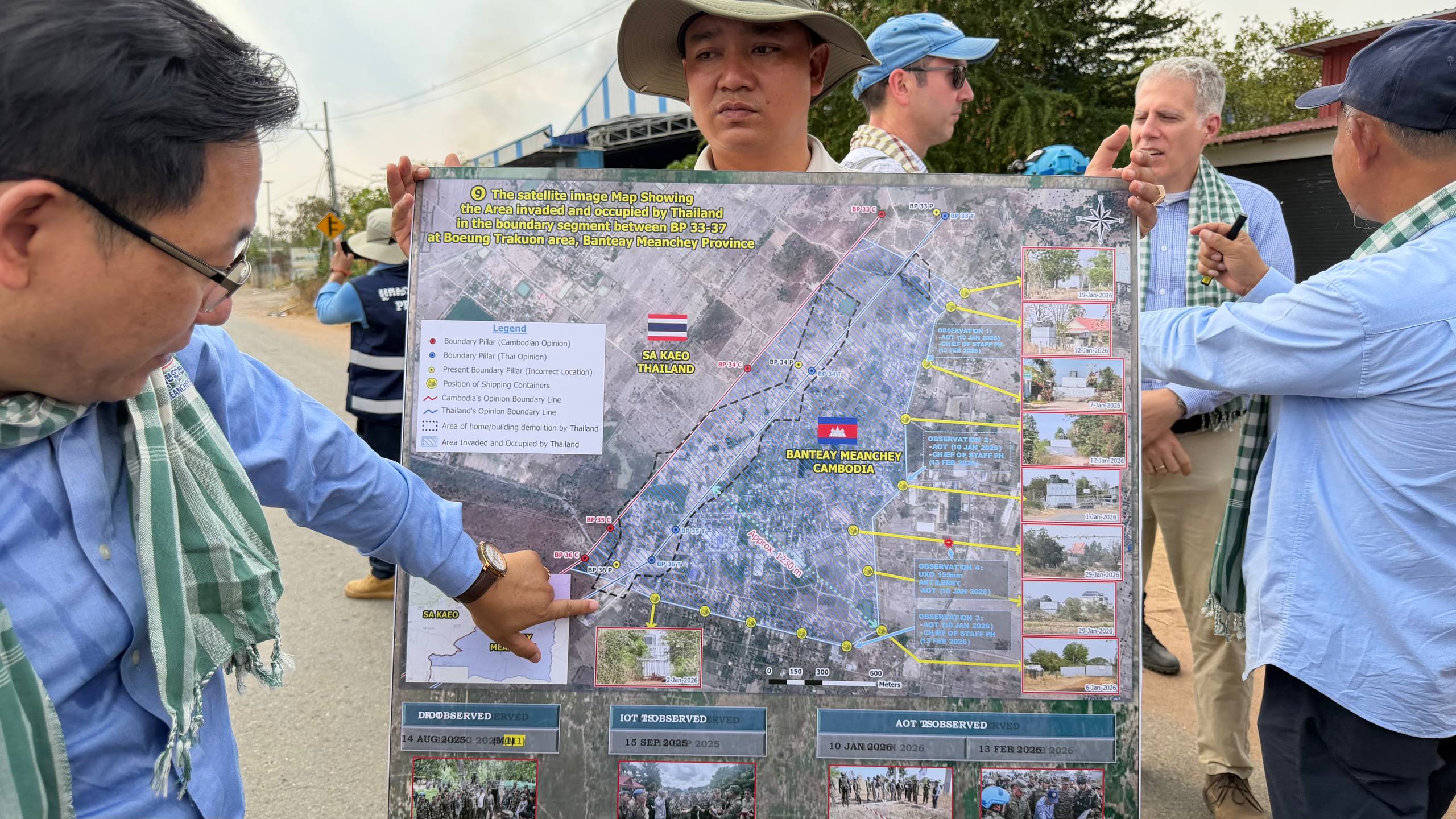 (បន្ទាយមានជ័យ)៖ បណ្តាឯកអគ្គរាជទូត ឯកអគ្គរដ្ឋទូត តំណាងទូត និងបណ្តាអង្គការអន្តរជាតិនានាប្រចាំកម្ពុជា នៅថ្ងៃទី២៣ ខែកុម្ភៈ ឆ្នាំ២០២៦នេះ បានចុះពិនិត្យដោយផ្ទាល់នៅតាមគោលដៅដែលយោធាថៃបានរាយបន្លាលួស និងដាក់ទូកុងតឺន័រព័ទ្ធយកដី និងផ្ទះប្រជាពលរដ្ឋខ្មែរស្លូតត្រង់ នៅតំបន់បឹងក្រកួន ស្រុកថ្មពួក និងភូមិជោគជ័យ ភូមិព្រៃចាន់ ក្នុងឃុំអូរបីជាន់ ស្រុកអូរជ្រៅ ខេត្តបន្ទាយមានជ័យ។