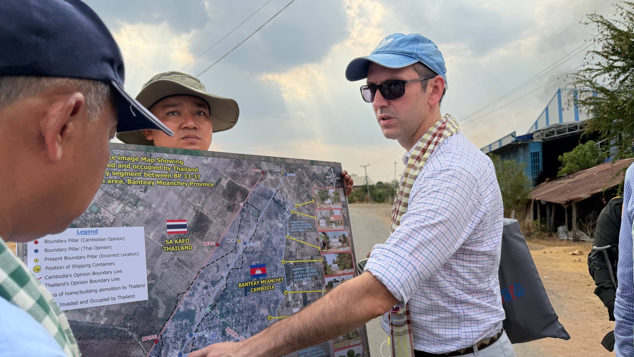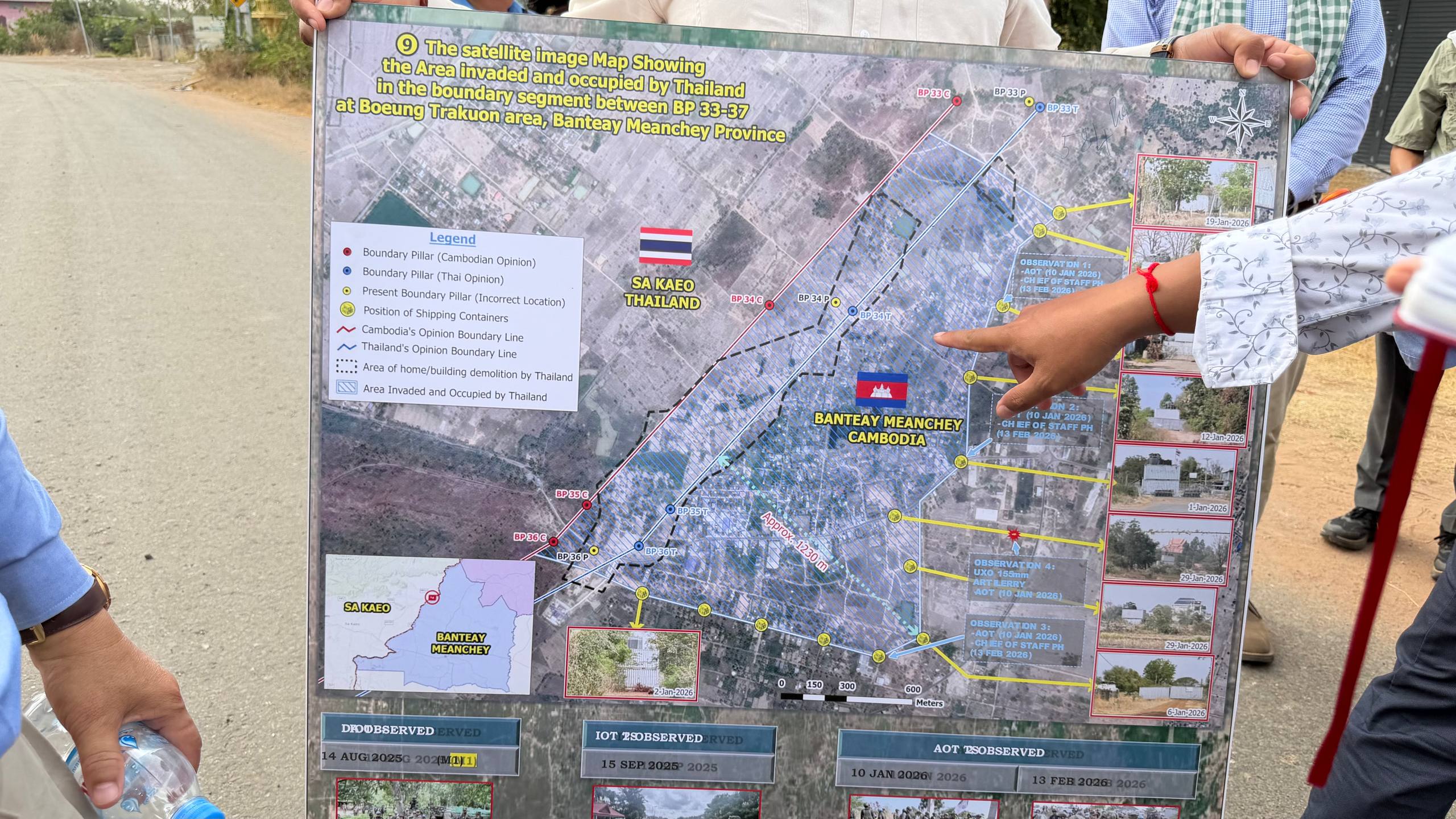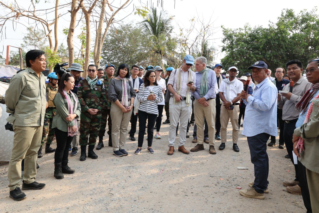 (បន្ទាយមានជ័យ)៖ បណ្តាឯកអគ្គរាជទូត ឯកអគ្គរដ្ឋទូត តំណាងទូត និងបណ្តាអង្គការអន្តរជាតិនានាប្រចាំកម្ពុជា នៅថ្ងៃទី២៣ ខែកុម្ភៈ ឆ្នាំ២០២៦នេះ បានចុះពិនិត្យដោយផ្ទាល់នៅតាមគោលដៅដែលយោធាថៃបានរាយបន្លាលួស និងដាក់ទូកុងតឺន័រព័ទ្ធយកដី និងផ្ទះប្រជាពលរដ្ឋខ្មែរស្លូតត្រង់ នៅតំបន់បឹងក្រកួន ស្រុកថ្មពួក និងភូមិជោគជ័យ ភូមិព្រៃចាន់ ក្នុងឃុំអូរបីជាន់ ស្រុកអូរជ្រៅ ខេត្តបន្ទាយមានជ័យ។