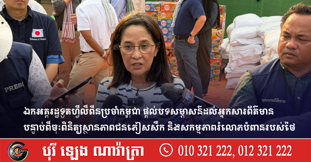 ឯកអគ្គរដ្ឋទូតហ្វីលីពីនប្រចាំកម្ពុជា ផ្តល់បទសម្ភាសន៍ដល់អ្នកសារព័ត៌មាន បន្ទាប់ពីចុះពិនិត្យស្ថានភាពជនភៀសសឹក និងសកម្មភាពរំលោភបំពានរបស់ថៃ (Video inside)