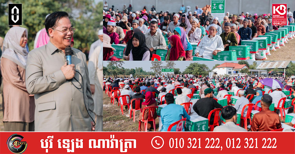 (ពោធិ៍សាត់)៖ នៅថ្ងៃទី២២ ខែកុម្ភៈ ឆ្នាំ២០២៦នេះ លោកបណ្ឌិត អូស្មាន ហាស្សាន់ ទេសរដ្ឋមន្ត្រីទទួលបន្ទុកបេសកកម្មពិសេស បានបន្តអញ្ជើញជាអធិបតីក្នុងពិធីសំណេះសំណាល និងចែកកញ្ចប់អាហារស្រាយបួសខែរ៉ាម៉ាឌន ចំនួន៦០០កញ្ចប់ ជូនសាសនិកឥស្លាម ភូមិស្វាយប៉ាក់ ឃុំព្រងិល ស្រុកភ្នំក្រវ៉ាញ ខេត្តពោធិ៍សាត់ និងចំនួន៧០០កញ្ចប់ ជូនសាសនិកឥស្លាម នៅភូមិព្រៃពិស ឃុំច្រេស ស្រុកកំពង់ត្រឡាច ខេត្តកំពង់ឆ្នាំង។