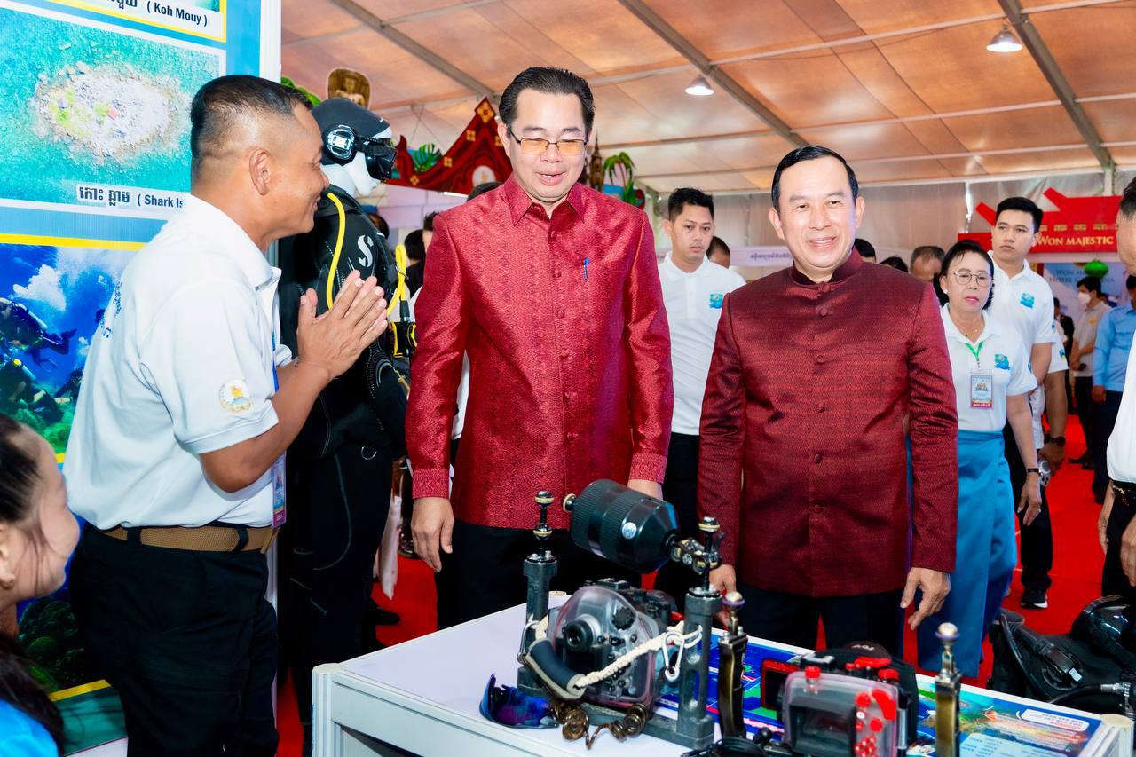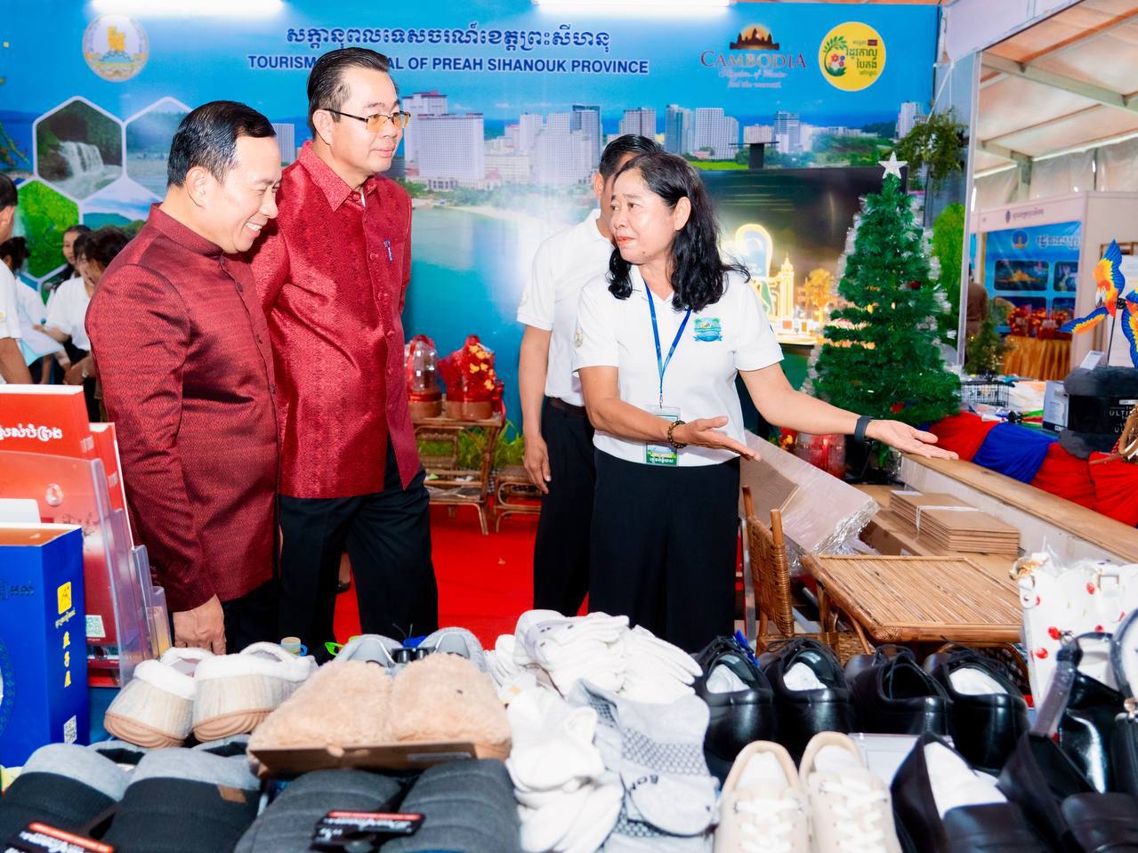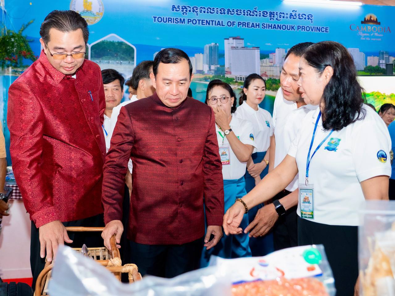 (ព្រះសីហនុ)៖ លោក ហួត ហាក់ រដ្ឋមន្ត្រីក្រសួងទេសចរណ៍ រួមជាមួយលោក ម៉ាង ស៊ីណេត អភិបាលនៃគណៈអភិបាលខេត្តព្រះសីហនុ នៅថ្ងៃទី២២ ខែកុម្ភៈ ឆ្នាំ២០២៦ អញ្ជើញឆ្លៀតចូលទស្សនាស្តង់ពិព័រណ៍ចំនួន៦៥ស្តង់ ក្នុងចំណោមស្តង់២២៥ ដែលរួមមានស្តង់ទេសចរណ៍ ស្តង់ពាណិជ្ជកម្ម ស្តង់ឧស្សាហកម្ម ស្តង់អាជ្ញាធរខេត្ត-ក្រុង-ស្រុក សហគមន៍ សមាគម ស្តង់ផលិតផលផលក្នុងស្រុកចម្រុះ ផលិតផលសិប្បកម្មប្រពៃណីធ្វើដោយខ្មែរ។