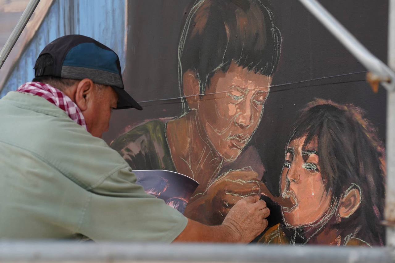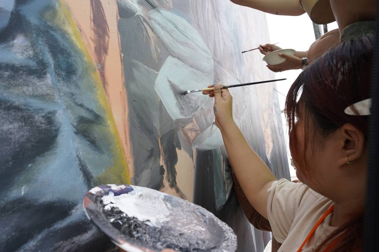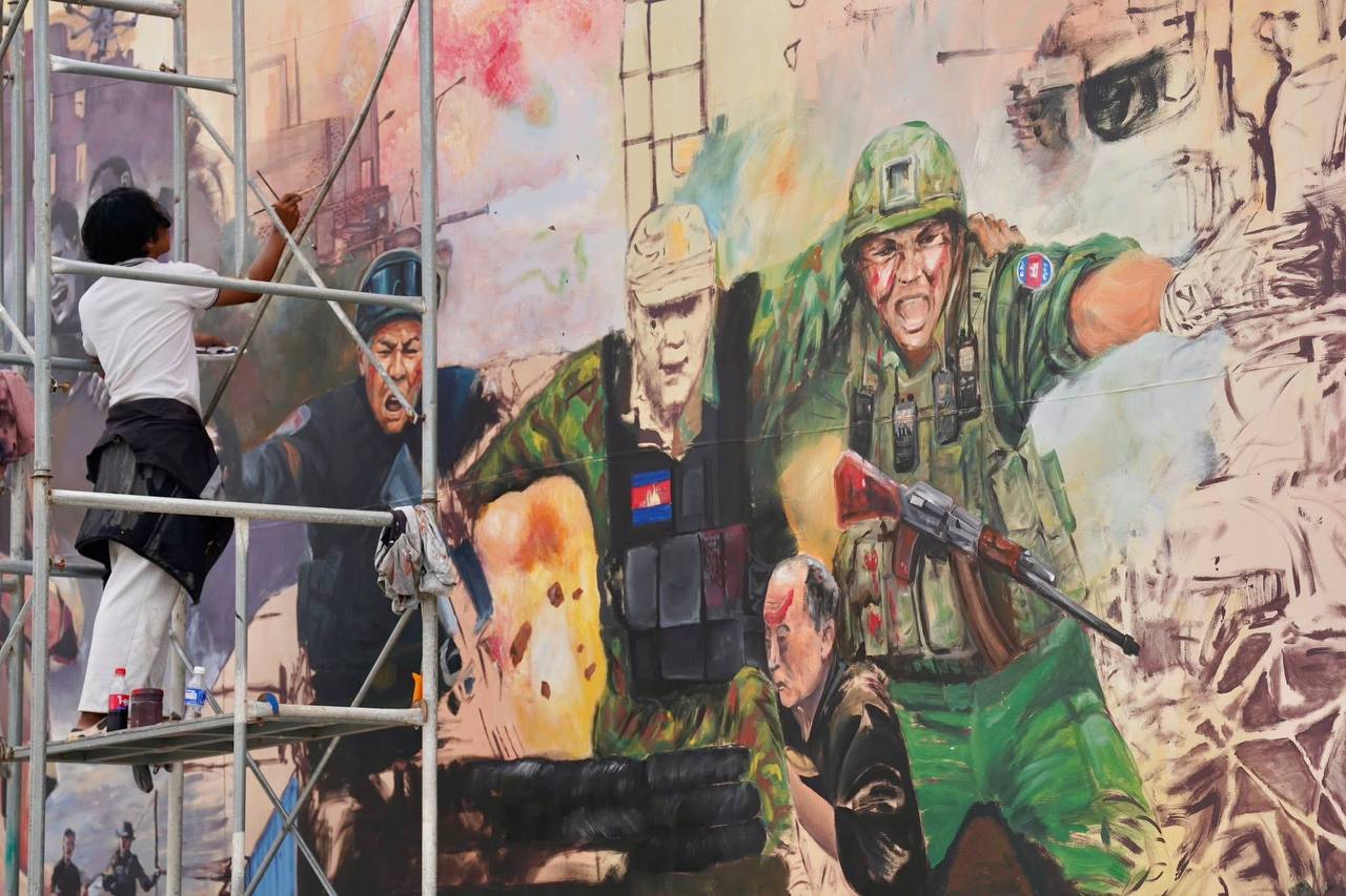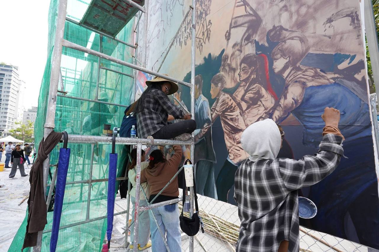 (ភ្នំពេញ)៖ ក្រុមវិចិត្រករជាច្រើនរូប កំពុងមមាញឹកក្នុងការគូរផ្ទាំងគំនូរក្រោមប្រធានបទ «សិល្បៈដើម្បីសន្តិភាព» ដែលបានចាប់ផ្តើមតាំងពីថ្ងៃទី២០ ខែកុម្ភៈ ឆ្នាំ២០២៦មកហើយ នៅបរិវេណមុខវត្តបទុមវតី រាជធានីភ្នំពេញ។ ផ្ទាំងគំនូរដ៏ធំនេះ មានទំហំ ៥ម៉ែត្រ គុណនឹង ៣៥ម៉ែត្រ និងគ្រោងចំណាយពេលសរុបប្រមាណ១០ថ្ងៃ ដើម្បីបញ្ចប់ការគូរ។