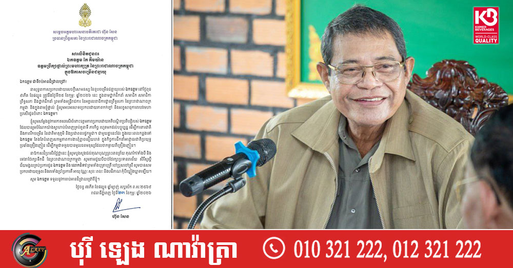 សម្តេចតេជោ ហ៊ុន សែន ផ្ញើសារលិខិតជូនពរ ឯកឧត្តម កែ គឹមយ៉ាន ឧត្តមប្រឹក្សាផ្ទាល់ព្រះមហាក្សត្រ ក្នុងឱកាសចម្រើនជន្មាយុ
