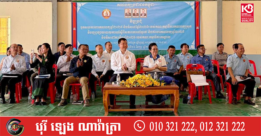 (បន្ទាយមានជ័យ)៖ លោក ជា ឆេង ប្រធានក្រុមការងារគណបក្សចុះមូលដ្ឋានស្រុកអូរជ្រៅ និងលោកស្រី នួម សុភ័ណ្ឌ សមាជិកគណៈកម្មាធិការកណ្តាល និងជាតំណាងរាស្ត្រមណ្ឌលខេត្តបន្ទាយមានជ័យ ចូលរួមជាអធិបតីក្នុងកិច្ចប្រជុំបូកសរុបលទ្ធផលការងារគណបក្សប្រចាំឆ្នាំ២០២៥ និងទិសដៅបន្តឆ្នាំ២០២៦ របស់គណ:កម្មាធិការគណបក្សស្រុក និងផ្សព្វផ្សាយរបាយការណ៍សភាពការណ៍ទូទៅឆ្នាំ២០២៥ និងទិសដៅឆ្នាំ២០២៦ របស់គណៈកម្មាធិការកណ្តាល។