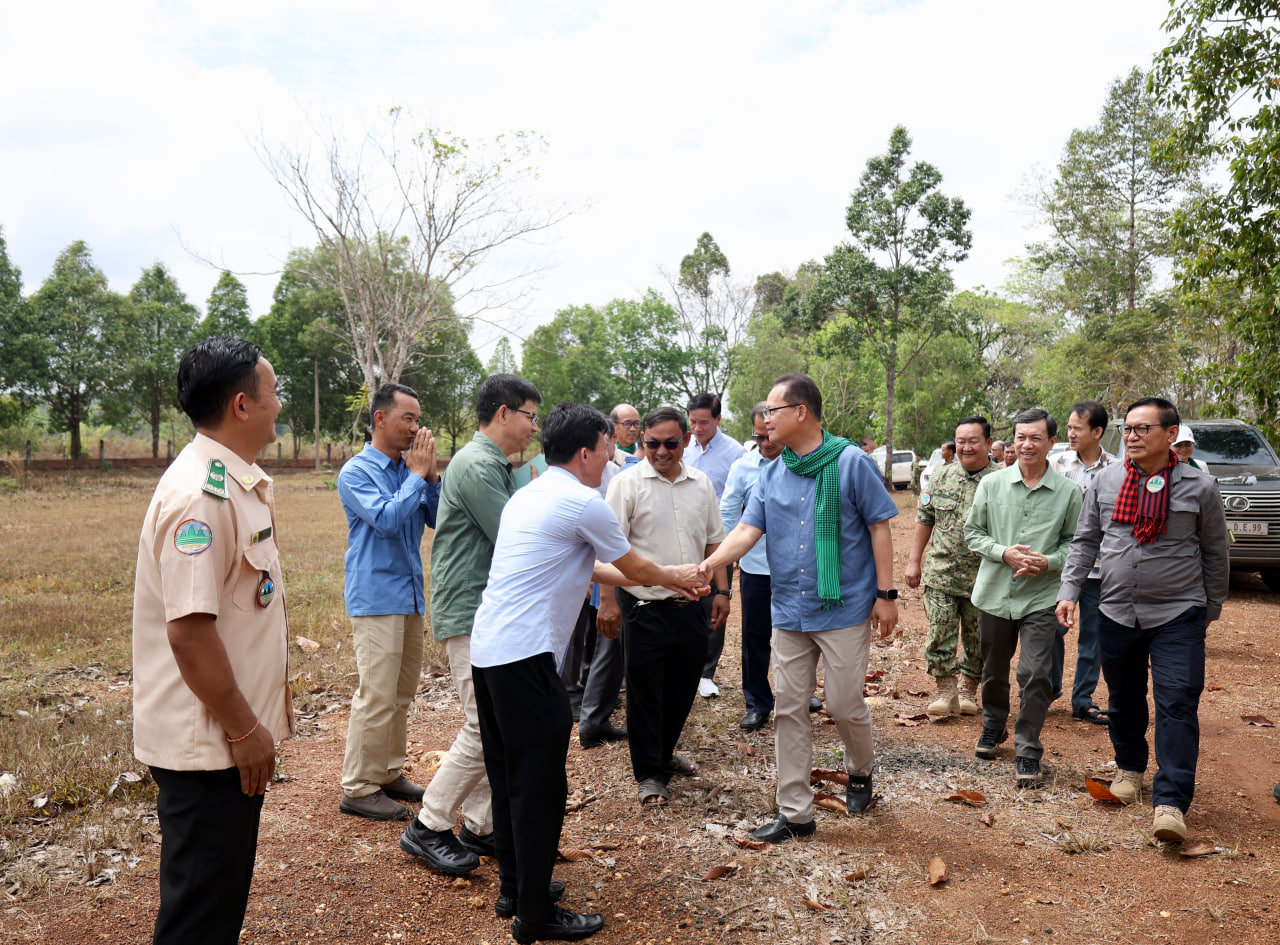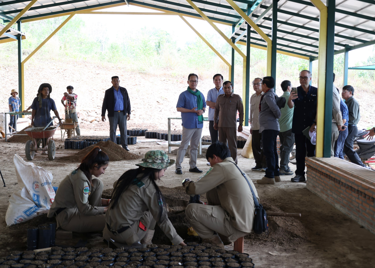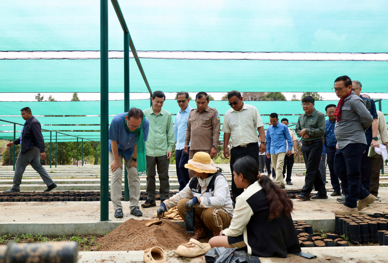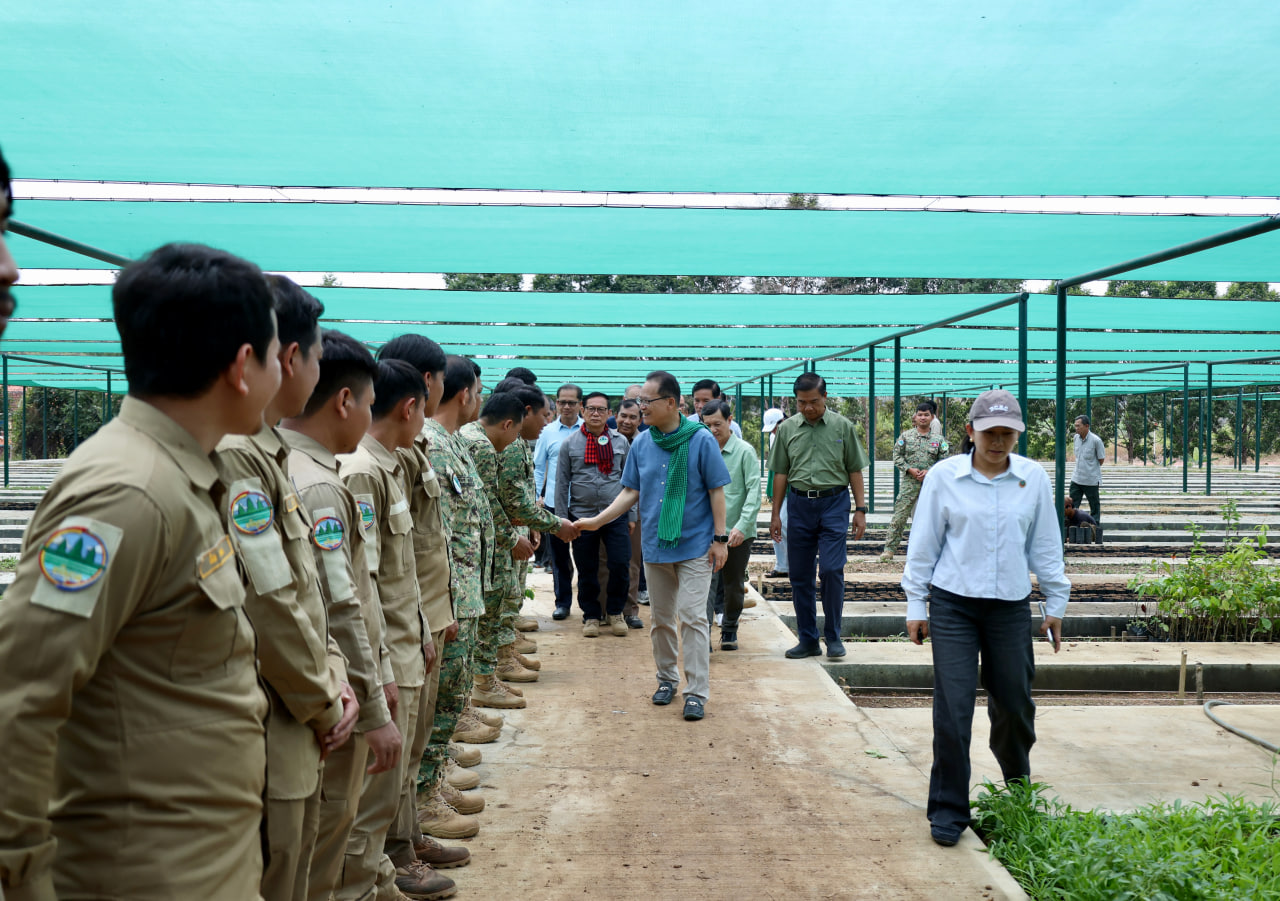 (មណ្ឌលគិរី)៖ ក្នុងឱកាសដឹកនាំប្រតិភូថ្នាក់ដឹកនាំក្រសួងបរិស្ថាន ចុះពិនិត្យថ្នាលបណ្តុះកូនឈើថ្នាក់តំបន់ ដែលមានទីតាំងនៅស្នាក់ការឧទ្យានុរក្ស នៃដែនជម្រកសត្វព្រៃកែវសីមា ស្រុកកែវសីមា ខេត្តមណ្ឌលគិរី នាព្រឹកថ្ងៃទី២៧ ខែកុម្ភៈ ឆ្នាំ២០២៦ លោកបណ្ឌិត អ៊ាង សុផល្លែត រដ្ឋមន្ត្រីក្រសួងបរិស្ថាន បានណែនាំឱ្យមន្ទីរបរិស្ថានខេត្ត បន្តពង្រឹងការគ្រប់គ្រងធនធានធម្មជាតិ ការកាពារភ្លើងឆេះព្រៃ ការល្បាត ការពង្រឹងការអនុវត្តច្បាប់ និងការយកចិត្តទុកដាក់ដល់ការលើកកម្ពស់ជីវភាព របស់ប្រជាសហគមន៍មូលដ្ឋាន ជាពិសេសជនជាតិដើមភាគតិច តាមរយៈការទទួលបានផលប្រយោជន៍ពី ឥណទានកាបូន ការរៀបចំសហគមន៍គោលដៅបៃតង ការធ្វើកសិកម្មមានមេត្រីនឹងបរិស្ថាននិងពង្រឹងភាពធន និងការប្រើប្រាស់កែច្នៃអនុផលព្រៃឈើប្រកបដោយនិរន្តរភាពជាដើម។