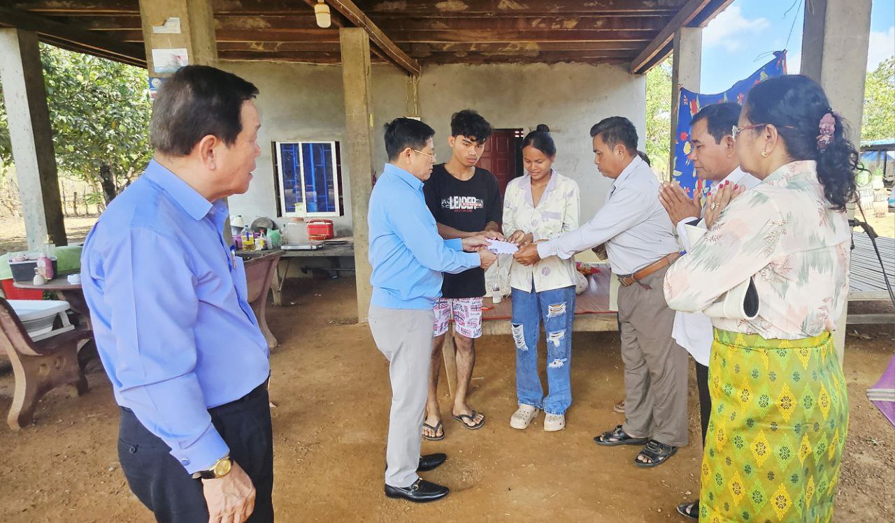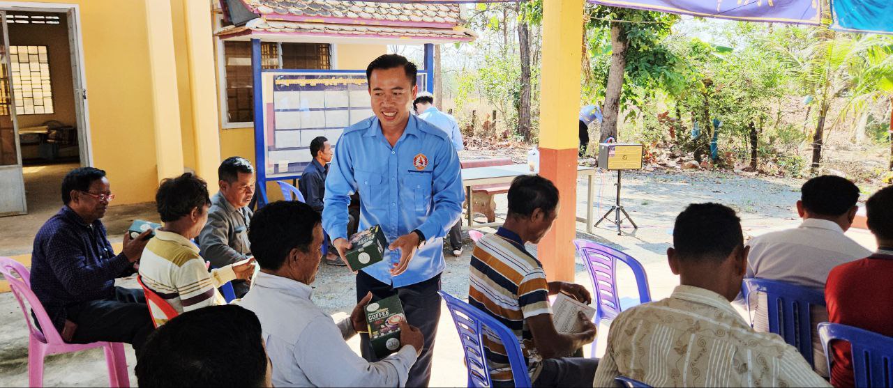 នៅឱកាសនោះដែរ លោកបណ្ឌិត កែរ រដ្ឋា បានចុះទៅសួរសុខទុក្ខលោកស្រី សួស ល័ក្ខ ជាសមាជិកភូមិ ដែលមានជំងឺរ៊ាំរៃធ្ងន់ធ្ងរ ព្យាបាលនៅផ្ទះ និងបានជូន ហូលបារាំង ១ក្បិន កាហ្វេសុខភាព ១ប្រអប់ និងថវិកា ២០ម៉ឺនរៀល៕