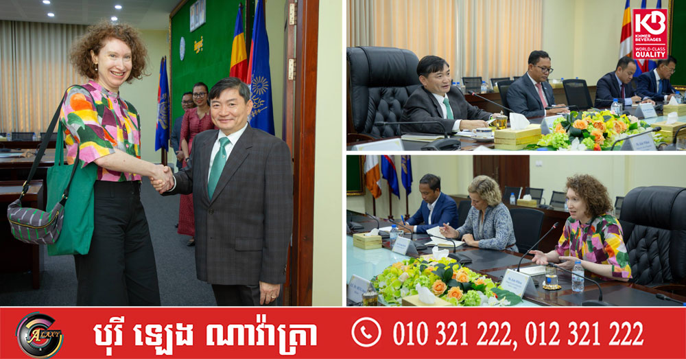 (ភ្នំពេញ)៖ លោក ហេង សួរ រដ្ឋមន្ត្រីក្រសួងការងារ និងបណ្ដុះបណ្ដាលវិជ្ជាជីវៈ បានទទួលជួបសម្ដែងការគួរសម និងពិភាក្សាការងារជាមួយលោកស្រី Kate Wilson ប្រធានកម្មវិធីប្រចាំតំបន់អាស៊ី នៃមជ្ឈមណ្ឌលសម្រាប់អាជីវកម្មប្រកបដោយការទទួលខុសត្រូវរបស់អង្គការសម្រាប់កិច្ចសហប្រតិបត្តិការ និងអភិវឌ្ឍន៍សេដ្ឋកិច្ច (OECD) នាព្រឹកថ្ងៃទី២ ខែមីនា ឆ្នាំ២០២៦ នៅទីស្តីការក្រសួង ដើម្បីស្វែងរកឱកាសពង្រឹងកិច្ចសហប្រតិបត្តិការ និងពិភាក្សាលើយុទ្ធសាស្ត្រនៃការអនុវត្តអាជីវកម្មប្រកបដោយការទទួលខុសត្រូវ (RBC) ដែលស្របតាមអាទិភាពគោលនយោបាយបច្ចុប្បន្នរបស់ក្រសួងការងារ និងបណ្តុះបណ្តាលវិជ្ជាជីវៈ។