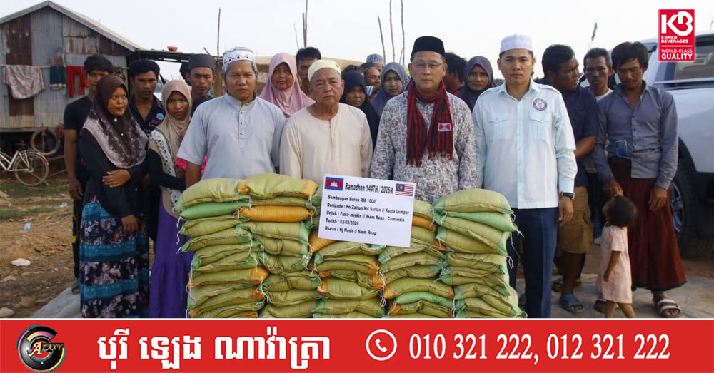 (សៀមរាប)៖ លោក អែល សៀត សមាជិកក្រុមប្រឹក្សាខេត្ត និងជាអនុប្រធានសាសនាឥស្លាមខេត្ត រួមជាមួយសហការី នៅថ្ងៃទី៣ ខែមីនា ឆ្នាំ២០២៦នេះ បានចុះសួរសុខទុក្ខ និងនាំយកអំណោយជាស្បៀងអាហារពីសប្បុរសជននៅប្រទេសម៉ាឡេស៊ី ដើម្បីចែកជូនដល់បងប្អូនសាសនិកឥស្លាមចំនួន ៨០គ្រួសារ ដែលកំពុងរស់នៅ និងប្រកបមុខរបរលើផ្ទះបណ្តែតទឹក ក្នុងសង្កាត់ចុងឃ្នៀស ក្រុងសៀមរាប ក្នុងឱកាសខែបួសរ៉ាម៉ាឌននេះ។