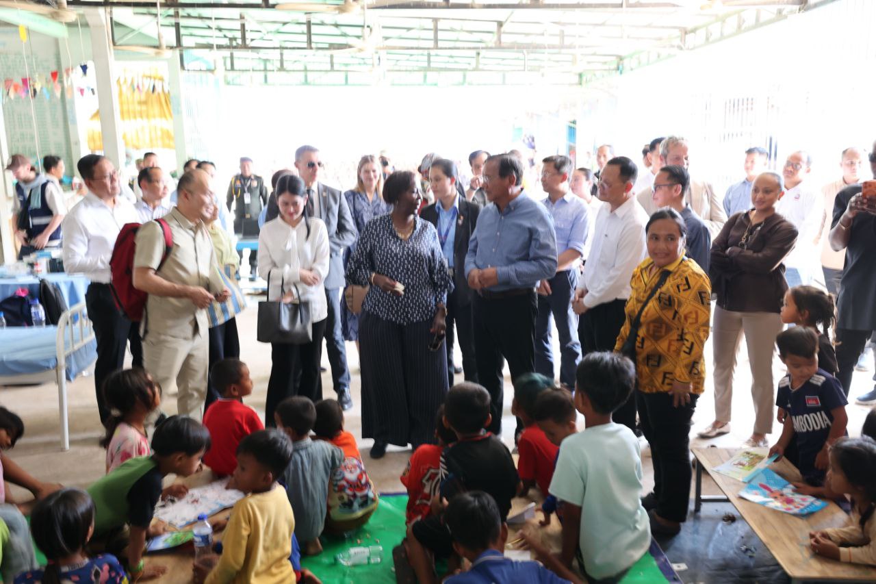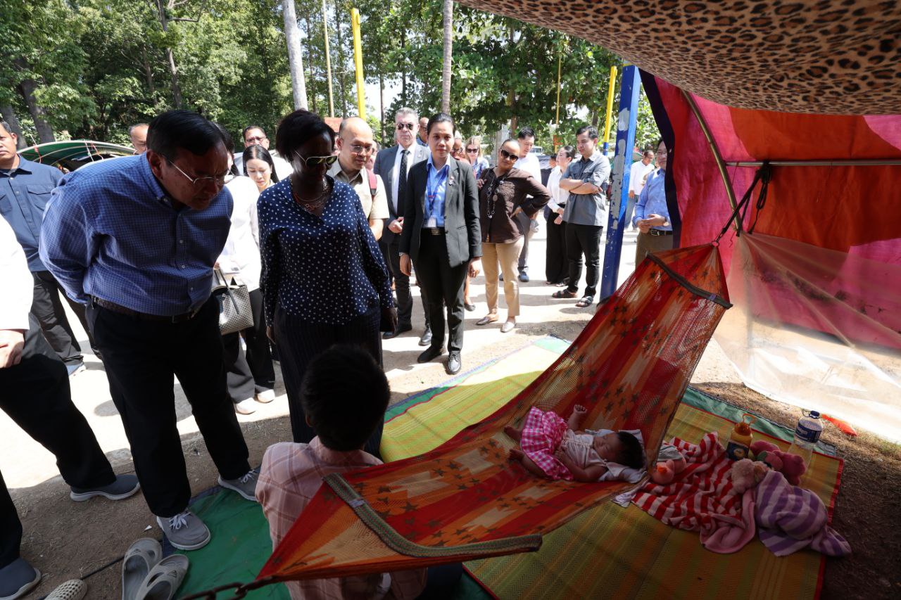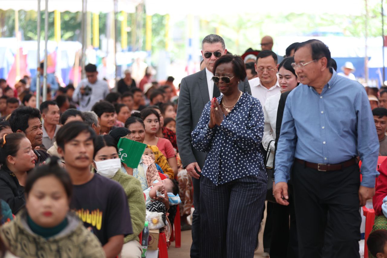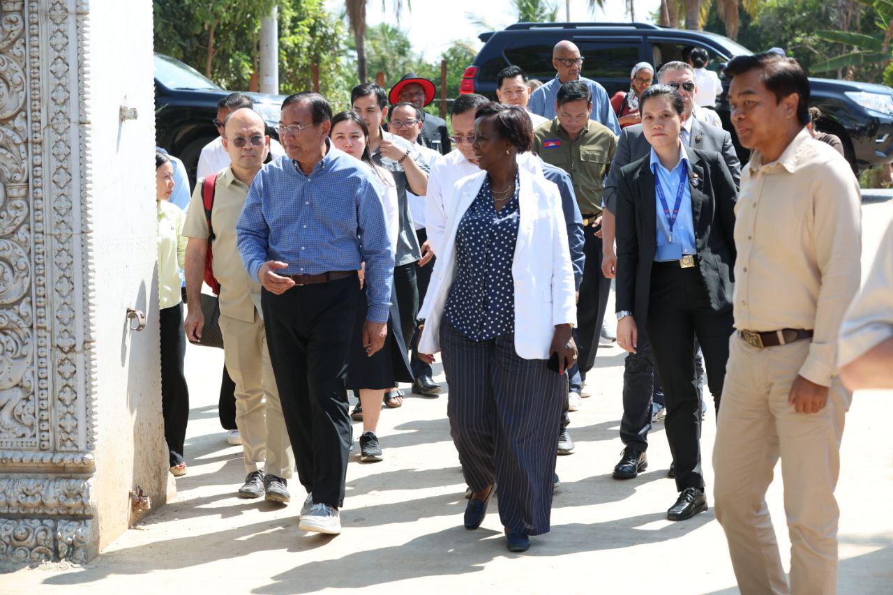 (សៀមរាប)៖ លោកស្រី ល្វីស មូស៊ីគីវ៉ាបូ (Louise MUSHIKIWABO) អគ្គលេខាធិការអង្គការអន្តរជាតិ នៃក្រុមប្រទេសនិយាយភាសាបារាំង និងឧបនាយករដ្ឋមន្ត្រី ប្រាក់ សុខុន រដ្ឋមន្ត្រីក្រសួងការបរទេស និងសហប្រតិបត្តិការអន្តរជាតិ និងគណៈប្រតិភូ នៅថ្ងៃទី៣ ខែមីនា ឆ្នាំ២០២៦នេះ បានចុះទៅសួរសុខទុក្ខជនភៀសសឹករបស់កម្ពុជា ដែលមិនទាន់បានត្រឡប់ទៅផ្ទះសម្បែងព្រោះសង្គ្រាមនៅតាមព្រំដែនរវាងកម្ពុជា និងថៃ ដែលកំពុងស្នាក់នៅបណ្តោះអាសន្នក្នុងមណ្ឌលសុវត្ថិភាពវត្តធម្មរង្សី ហៅវត្តសំពៅលូន ស្ថិតនៅភូមិសំពៅលូន ឃុំក្រឡាញ់ ស្រុកក្រឡាញ់ ខេត្តសៀមរាប។