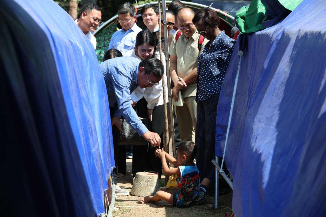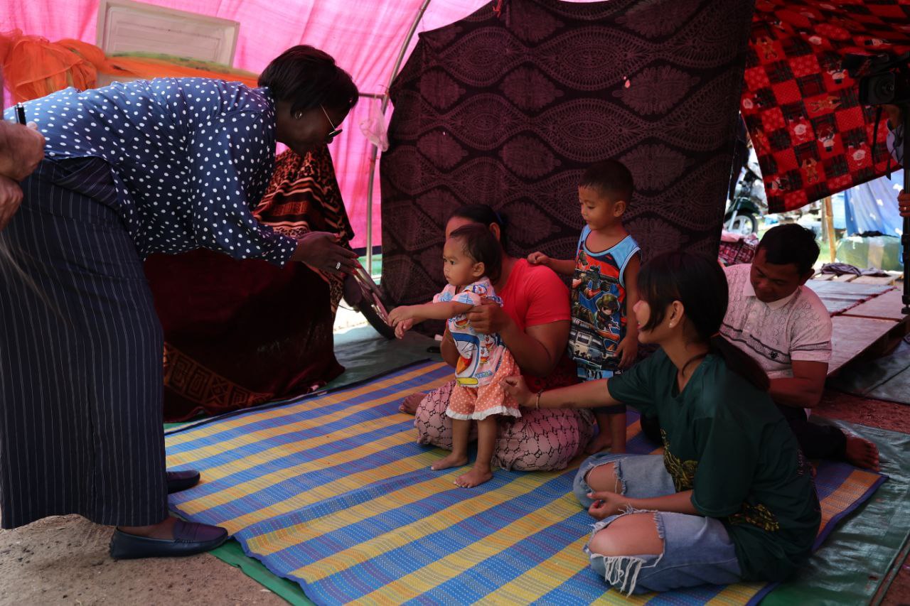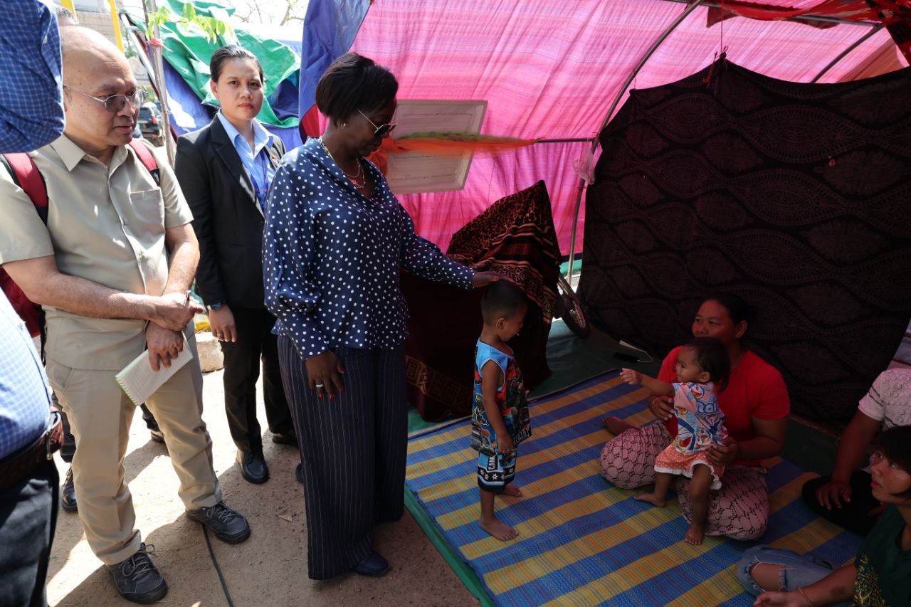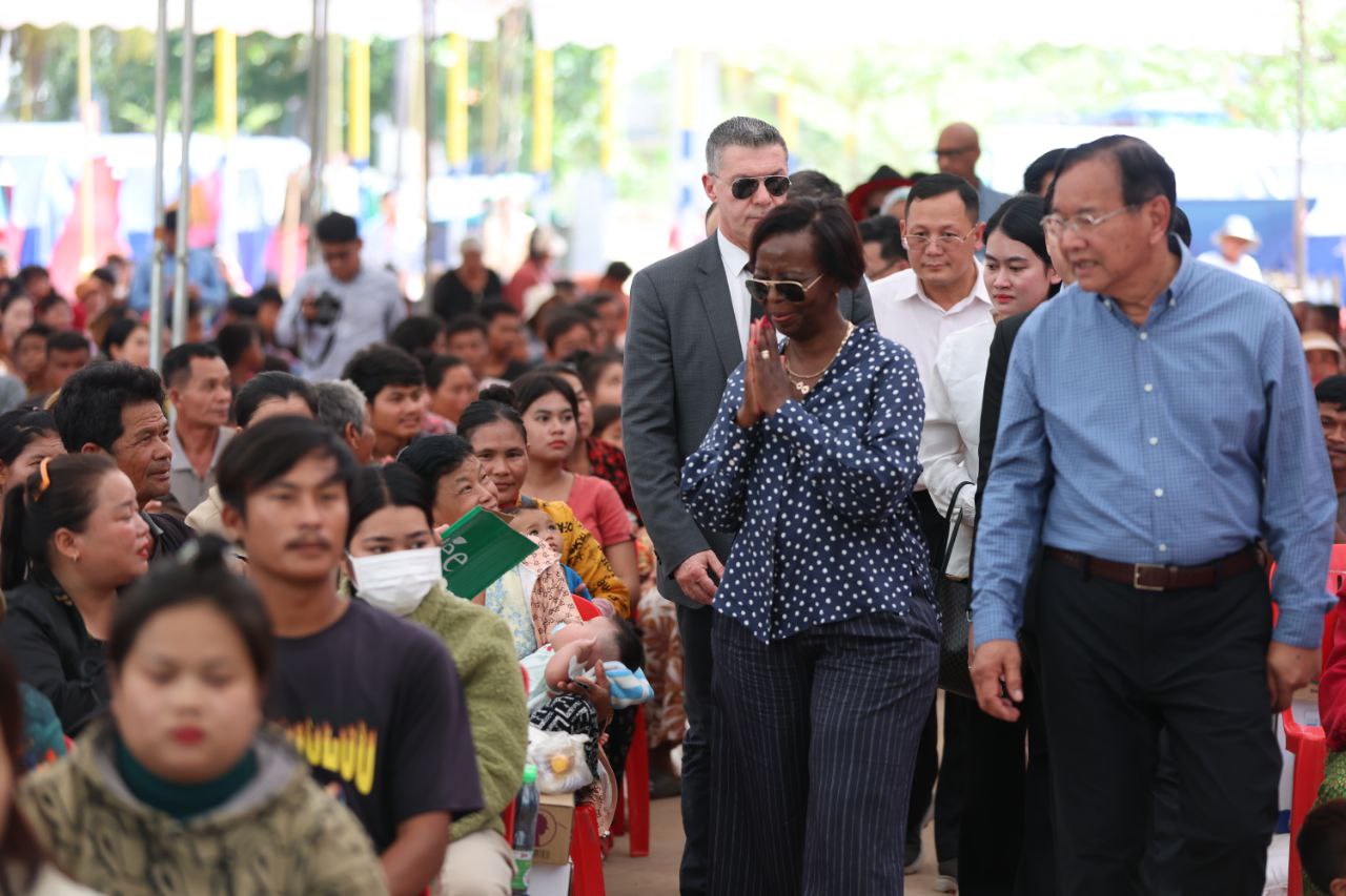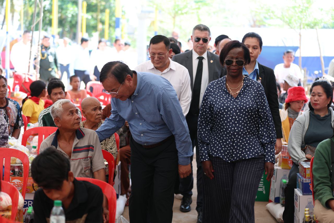 (សៀមរាប)៖ លោកស្រី ល្វីស មូស៊ីគីវ៉ាបូ (Louise MUSHIKIWABO) អគ្គលេខាធិការអង្គការអន្តរជាតិ នៃក្រុមប្រទេសនិយាយភាសាបារាំង និងឧបនាយករដ្ឋមន្ត្រី ប្រាក់ សុខុន រដ្ឋមន្ត្រីក្រសួងការបរទេស និងសហប្រតិបត្តិការអន្តរជាតិ និងគណៈប្រតិភូ នៅថ្ងៃទី៣ ខែមីនា ឆ្នាំ២០២៦នេះ បានចុះទៅសួរសុខទុក្ខជនភៀសសឹករបស់កម្ពុជា ដែលមិនទាន់បានត្រឡប់ទៅផ្ទះសម្បែងព្រោះសង្គ្រាមនៅតាមព្រំដែនរវាងកម្ពុជា និងថៃ ដែលកំពុងស្នាក់នៅបណ្តោះអាសន្នក្នុងមណ្ឌលសុវត្ថិភាពវត្តធម្មរង្សី ហៅវត្តសំពៅលូន ស្ថិតនៅភូមិសំពៅលូន ឃុំក្រឡាញ់ ស្រុកក្រឡាញ់ ខេត្តសៀមរាប។