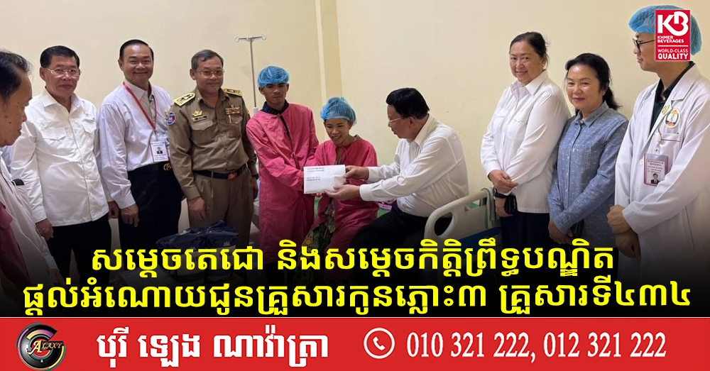 សម្តេចតេជោ ហ៊ុន សែន, សម្តេចកិត្តិព្រឹទ្ធបណ្ឌិត, សម្តេចធិបតី និងលោកជំទាវបណ្ឌិត ផ្តល់អំណោយជូនគ្រួសារកូនភ្លោះ៣ គ្រួសារទី៤៣៤ (Video inside)